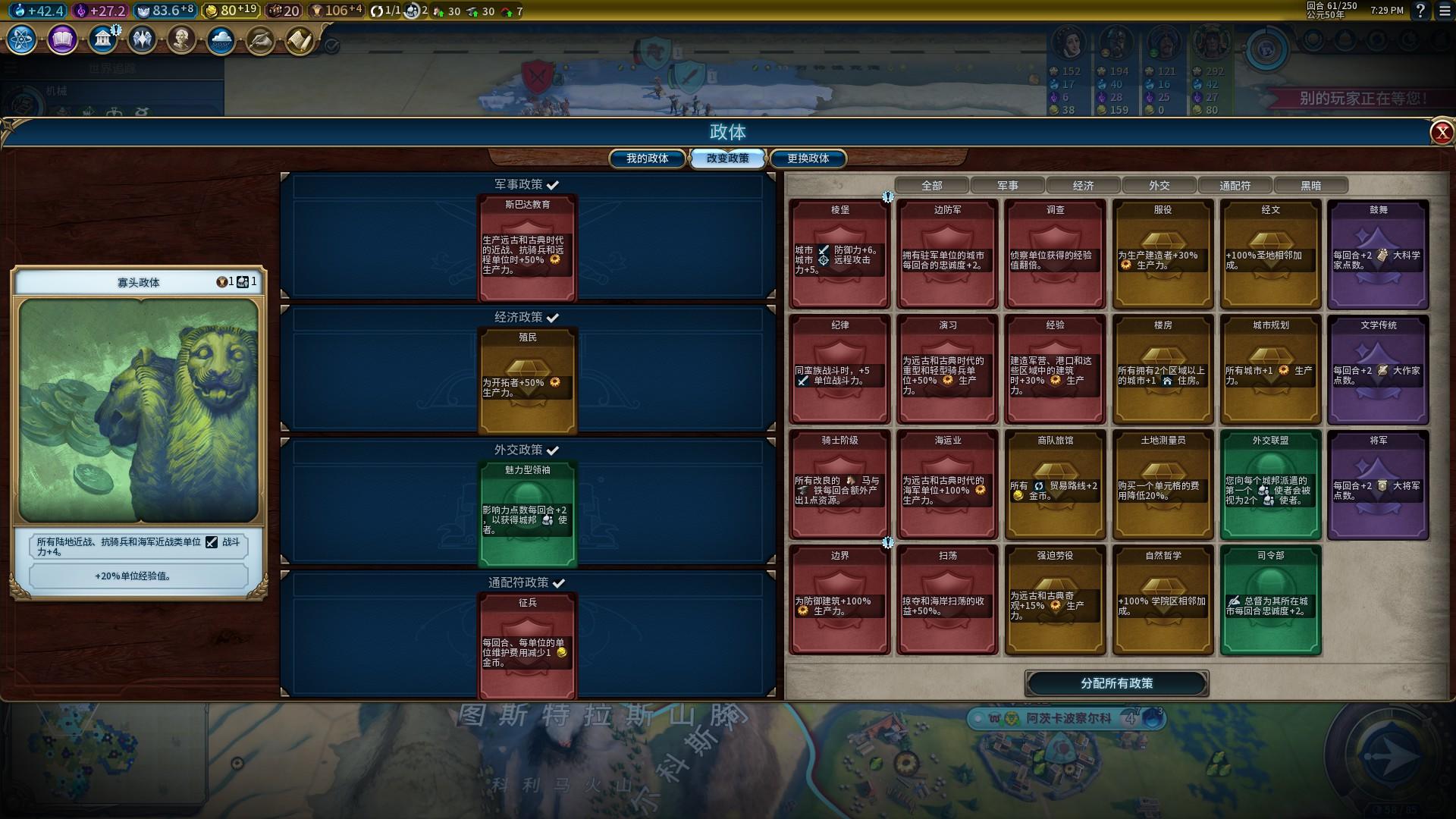 最后值得一提的是,本版本的次发信条什一税得到了比较大的加强,从人口加成变成了每座城市+3g,意味着传完自己城市的教就可以额外获得不少金币,对我等pvp玩家来说,算是缓解了不小的财政压力。