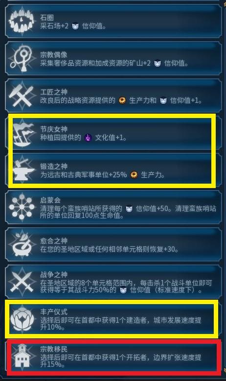 目前版本万神殿的套路比较固定,宗教移民白拿一个开拓者的能力是最为泛用也最强的选择,在绝大部分情况下,选它不会错。