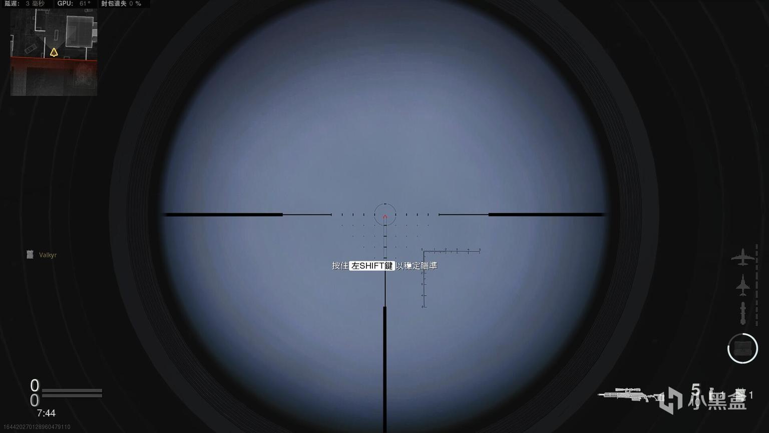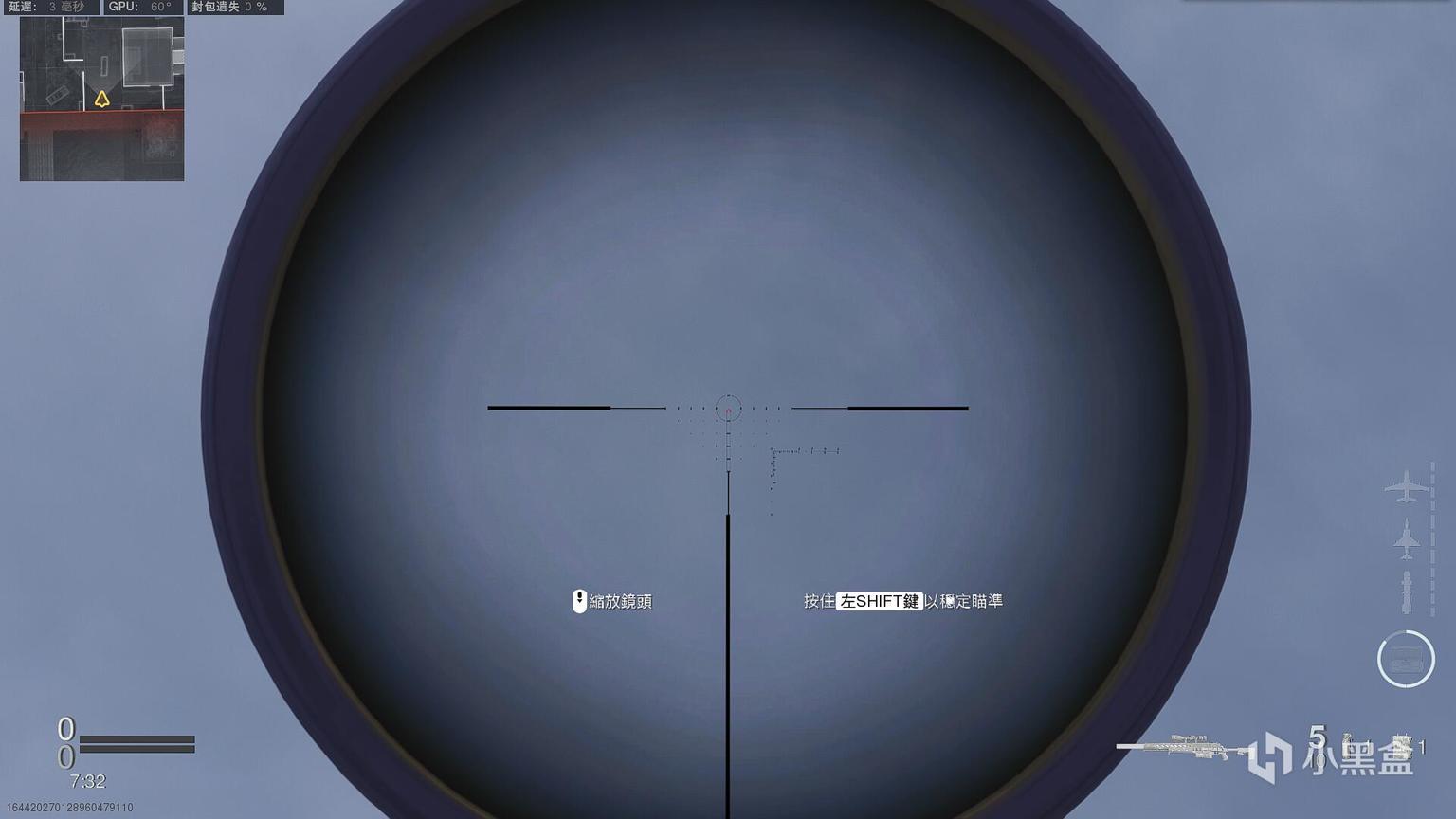 还要说明一点,就是屏息中松开shift人物会深呼吸一次,此时即使很快地再次按下shift也需要一断时间的调整才能稳定下来,建议是收镜/换弹时再松开shift,毕竟装了镇定自若后能屏息62秒。如果这个时间还不够用,你该考虑下自己架狙的点是不是有问题,该重新找点位了。