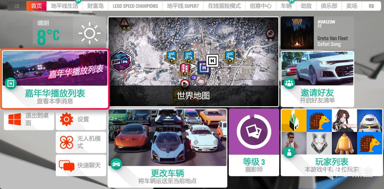 同时抽奖,地平线生活等级奖励,SUPER 7,乐高DLC和财富岛DLC(财富岛的奖励非常丰厚(一共十个))也能够获得车和钱。有人问去tb买钱或者买车可以吗,我其实不推荐去tb,因为其实他们刷的方法没有成本,几乎就是有手就行(无非就是用CE)。况且通过自己的每一次比赛来赚取的车辆不是更有意义吗^^。