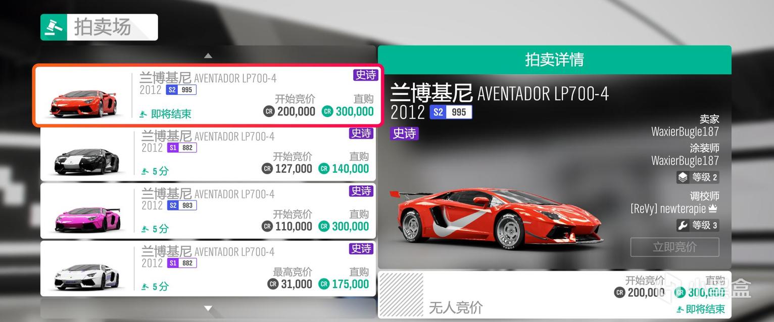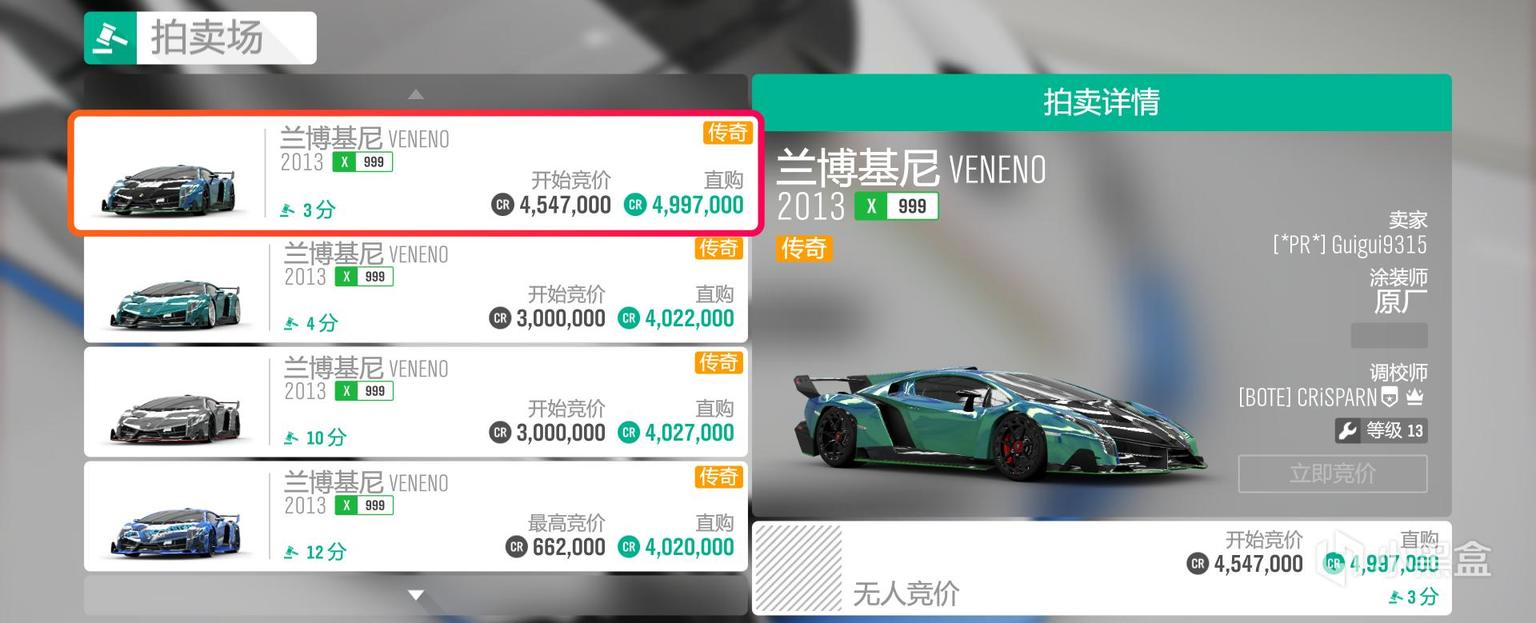 举个例子,这里有开始竞价和直购两个数字,开始竞价就是跟拍卖一样显示的是最高价,而直购相当于买断。有钱买断就vans了,但刚开始肯定没啥钱,又想抢到这车怎么办呢?