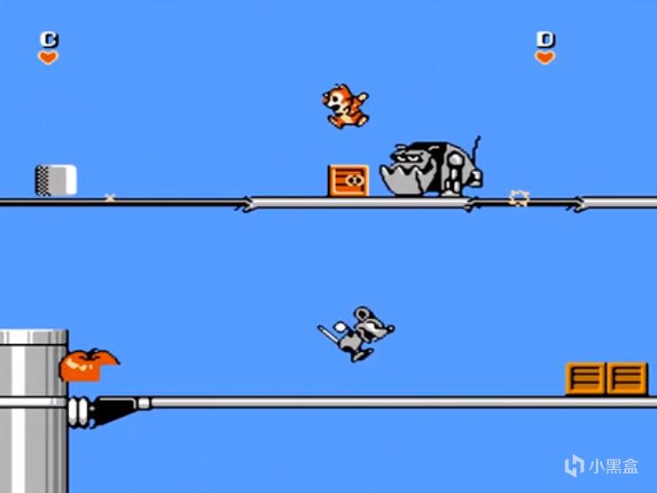 不少双人游戏真的是双“人”,例如《魂斗罗》《古巴英雄》《赤影战士》。还有一些双人都是机甲载具,例如《赤色要塞》《宇宙巡航机》《坦克大战》。要说操作对象是动物的双人游戏,一时半会儿还真想不到几个(其实有《忍者神龟》)。《松鼠大作战》的角色是两只花栗鼠,这种二头身角色自带萌属性,看着就可爱且搞笑。