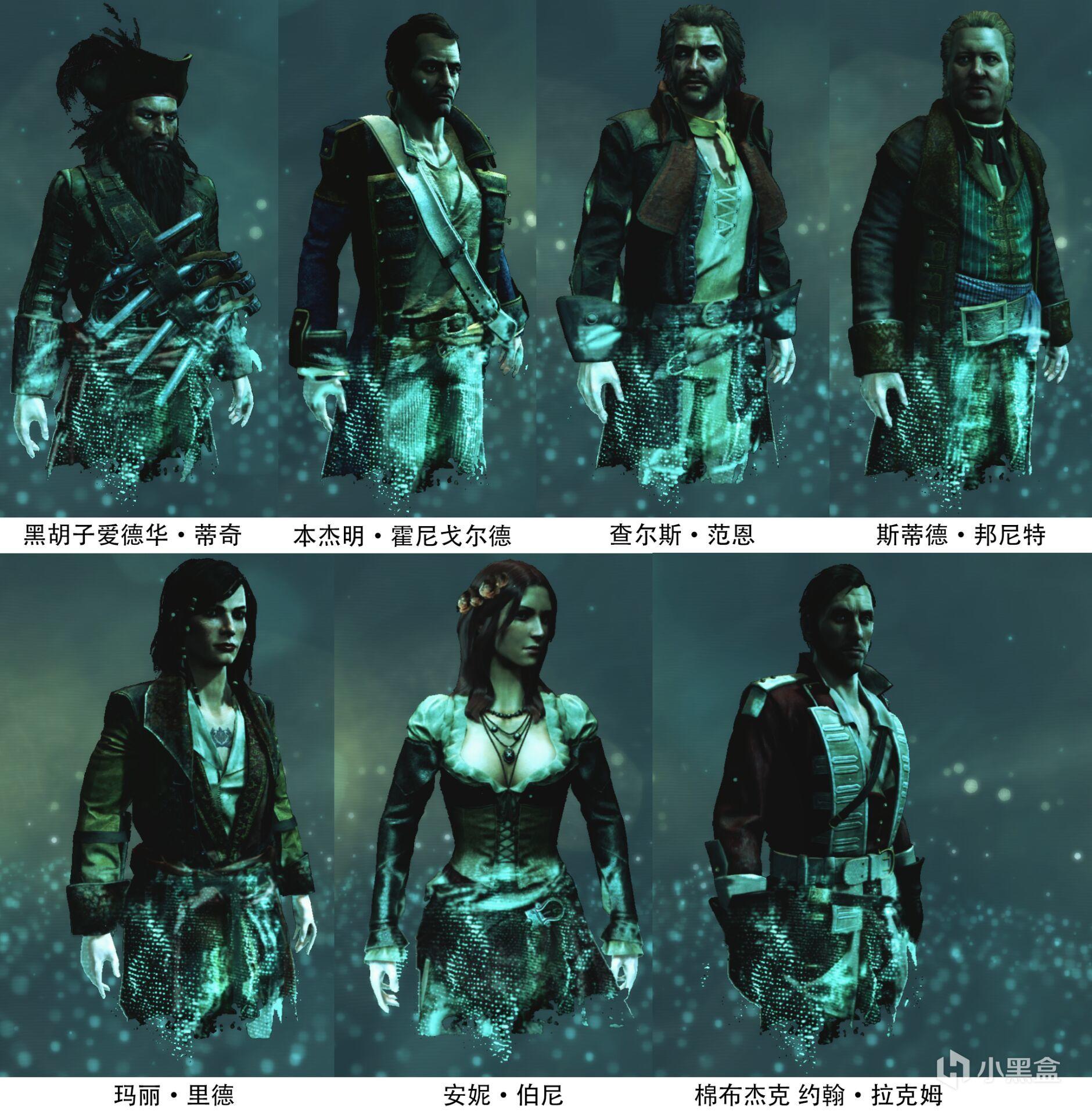 在海盗黄金时代,出现了许许多多大名鼎鼎也可以说是臭名昭著的海盗,其中便有黑胡子爱德华·蒂奇(安妮女王复仇号)、本杰明·霍尼戈尔德(流浪者号) 、查尔斯·范恩(百灵鸟号)、斯蒂德·邦尼特(复仇者号)、著名女海盗玛丽·里德(游戏剧情设定中带领主角接触刺客组织)、著名女海盗安妮·伯尼(游戏中寒鸦号军需官)、棉布杰克 约翰·拉克姆。以上便是游戏剧情中出现的主要海盗了。