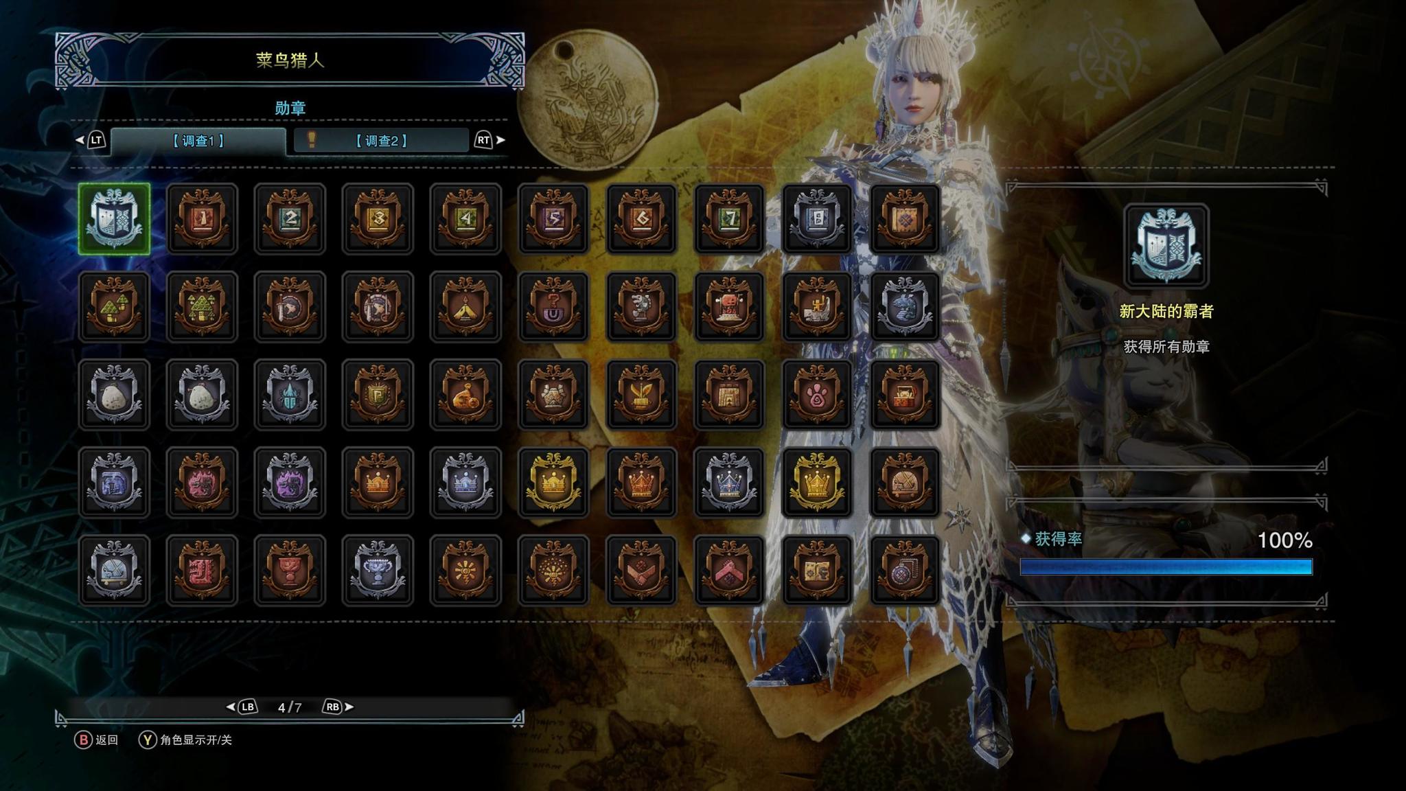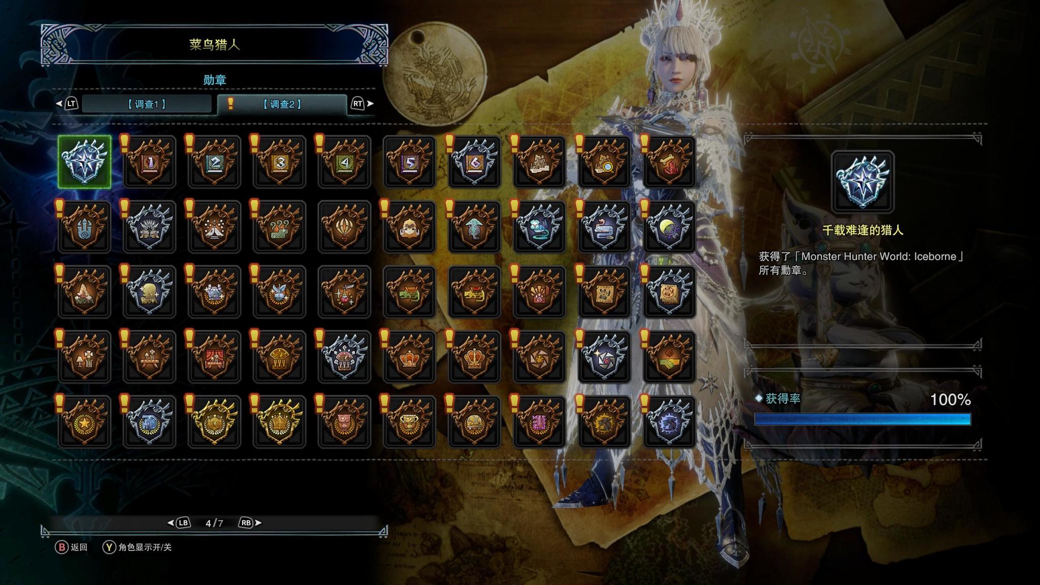 老规矩,开头还是以全成就的截图奉上。除了部分成就比如名片、斗技、拍照、宝藏之类的需要专门去做一下以外,怪物猎人世界最肝的成就肯定就是收集齐图鉴里记录的几乎所有怪物的大小金了。我游玩的大部分时间都花在了量大小金和打大小金上,怪物不难打,但是要碰到对的还要打过就不是一件容易的事了。后面我也会分享一点我的刷大小金的心得,也算是给还没有刷齐大小金的猎人一点小建议。(补充一点:成就方面建议先做宝藏交换物品,会出稀有生物,就不用了专门去抓了,我在交换物品的过程中出过小蓝歌两只+神带鱼+道标壁虎)
