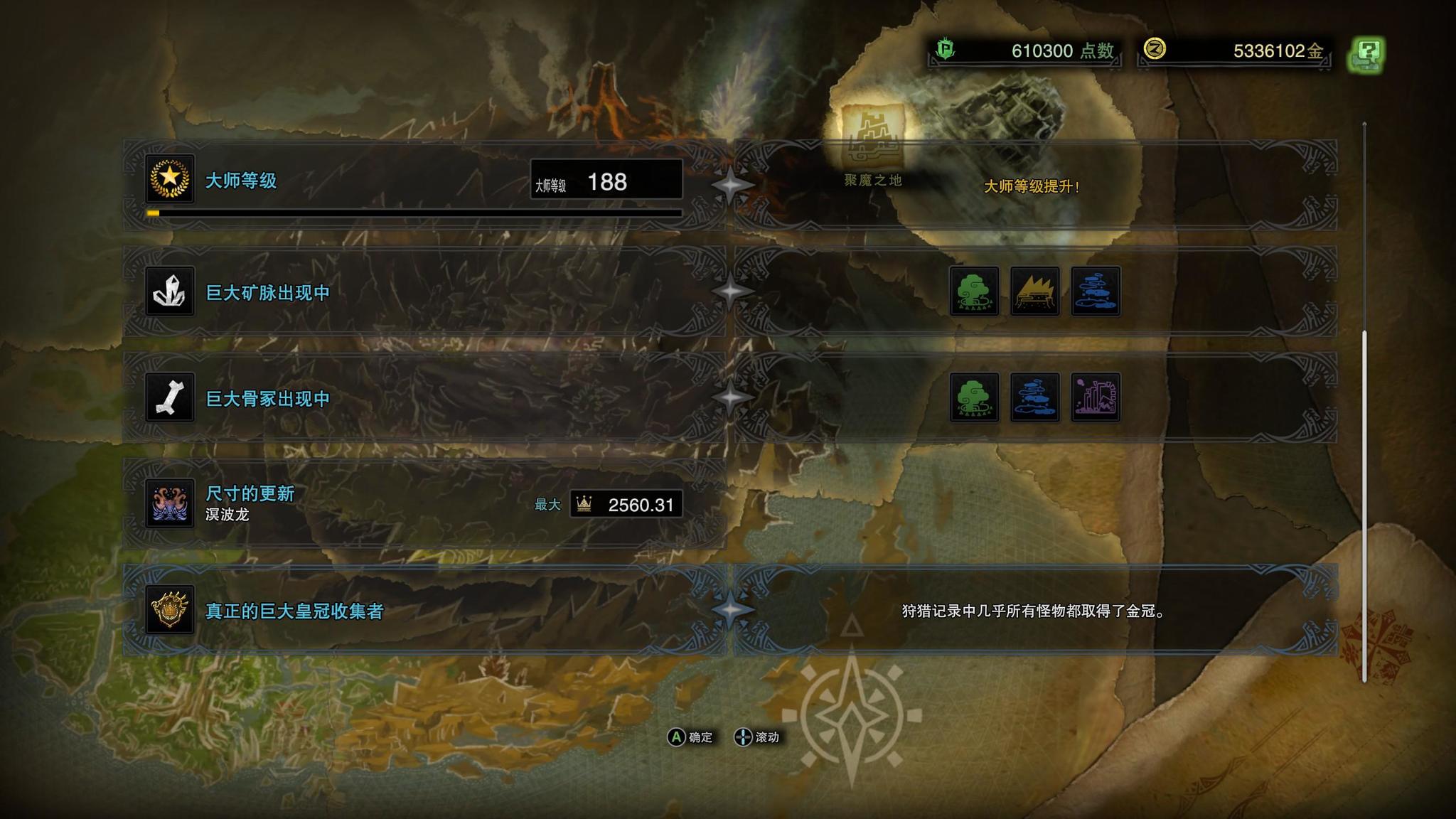 然后就是测量大小金的方法了,个人认为数步数是最准的,比如16步归位的大金角龙、6步归位的小金黑角,但是比较耗时间,而且对怪物出生点也有一定的要求。其次用的比较多的就是脚踝,比如尸套龙、黑狼鸟,也可以看尾巴的位置,比如灭尽龙、钢龙,还有例如麒麟的看肚皮位置(不过据说大金大银模型有问题)、冰呪龙看第几根刺的位置等等,也有用大爆桶作为参照物,不过这个我没试过,个人认为还是找一个人能触及到的怪物的部位作为参考系,看的多了你自己也可以总结出经验,不过这样也导致我刷的怪比较少,看到像的才会去打,上位基本上都在上位刷掉了,最后大小金齐了大师还没到200级。最后放两张我大小金分别齐了的跳成就图。
