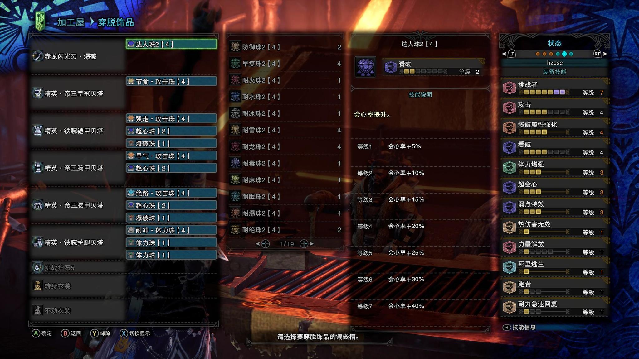 不过这里还是要提一下比较BUG的新手装备——防卫队套装。虽然它只是为了让玩家更快地进入冰原,但是对于新手来说前期过分依赖会导致后面的游戏体验不佳,前期站撸杀怪后期被虐成狗,做游戏正常流程的武器和防具也是为了让玩家更好地适应这个游戏和熟悉怪物,自己也会在亲手打败怪物之后有很强的成就感。我太菜了黑龙还没打过,最后用的冰呪龙外观,猛爆2件套+炎王3件套,珠子也没刻意去刷,但是满会心就满足了,攻击能到7就更好了,这里放下我的防具和武器图。