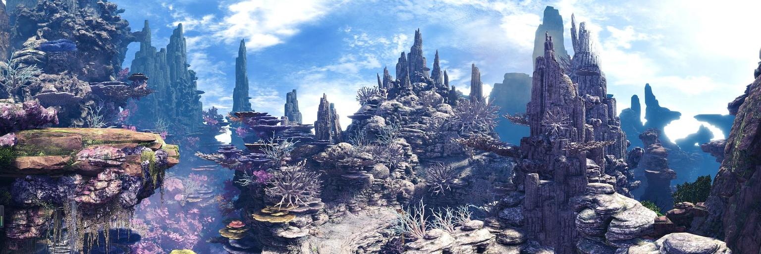 怪物猎人的新大陆被划分为了好多个风格迥异的开放地图区域:以热带雨林为原型的古代树森林;由峡谷荒漠要素组合而成的大蚁塚荒地;颇有海底气息的陆珊瑚台地;充满瘴气和怪物尸骨的瘴气之谷;布满结晶石和岩浆的龙结晶之地;冰天雪地的永霜冻土;以及渣渣辉的黄金地图……这些风格迥异的地图有着完全不同的生态环境,因此新地图的探索也是充满了乐趣。每个地区所拥有的的独特地形就是用来协助你进行狩猎的:高低差台阶、斜坡、落石、藤蔓险境、地图内的其他生物……合理利用环境优势也是猎人的基本素养之一。