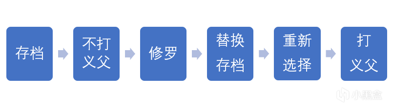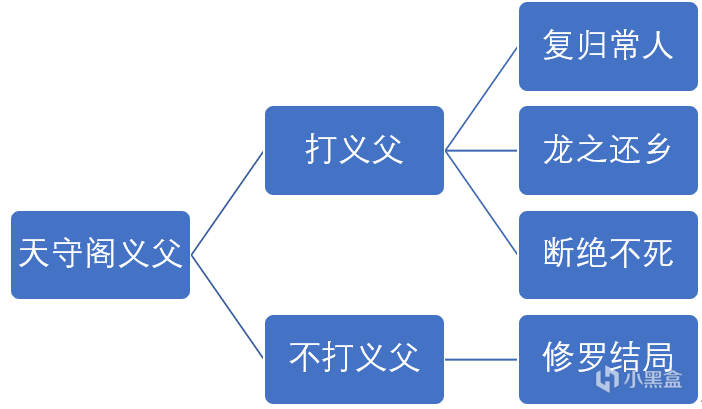 在天守阁遇到义父之时,出现了选择,要么不打义父,完成修罗结局,要么打义父,其他三个结局中选一个。