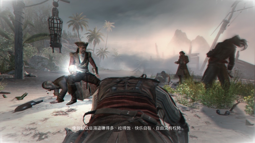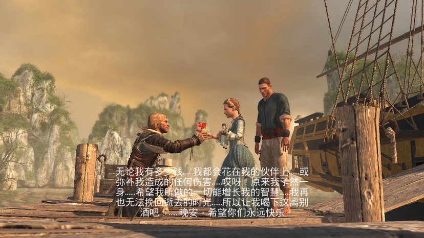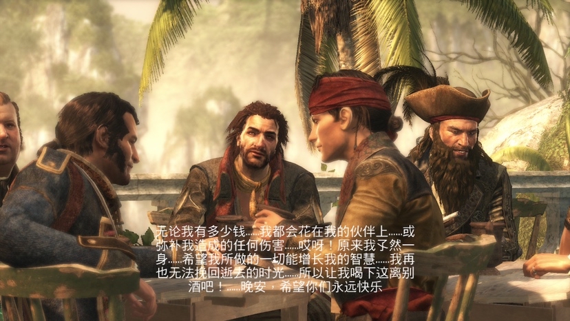 我认为游戏前期对故事设定讲述是缺乏的,容易导致玩家在游戏摸不着头脑,不知道自己在干嘛。(对不起是我了)我到拿骚之后看到本杰明和黑胡子跟我勾肩搭背,只想说“这俩货谁啊,我和他很熟吗,他们干啥子来着”。