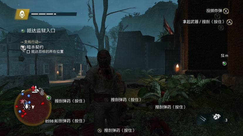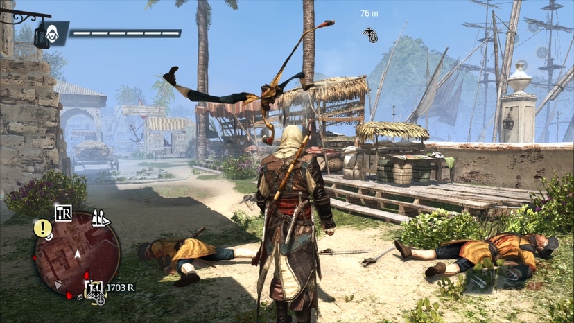 刺客信条的暗杀系统在黑旗里我看到做的是真的很成熟了。各种各样的装备道具,躲入草丛草堆人群,发出鸟叫声,暗杀悄无声息。神器般的吹箭。最后才获取的绳镖甚至可以让人直接上吊而亡。实实在在的花样暗杀。(是我太菜还是容易被发现从而进入无双...)