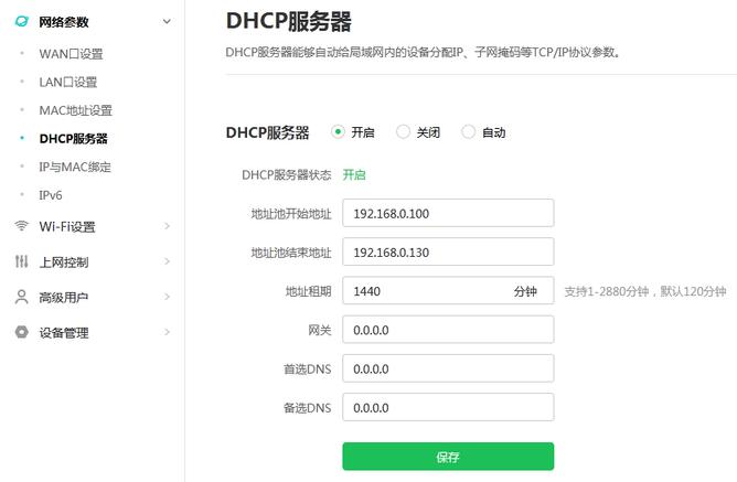 使用路由器绑定:打开路由器管理页面进行登录,登录成功后,选择右上角的高级设置,在新页面中选择网络参数中的DHCP服务器,设定地址池,完成后保存。