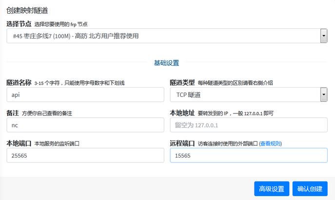 隧道类型:选择网络类型,Minecraft走TCP隧道,保持默认。