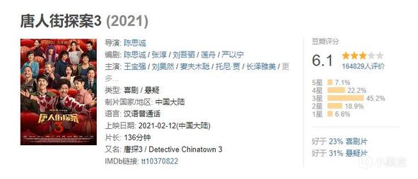 所以,凭借《唐探3》目前只有6.1分的豆瓣评分就认为他是一部烂片,并不客观。