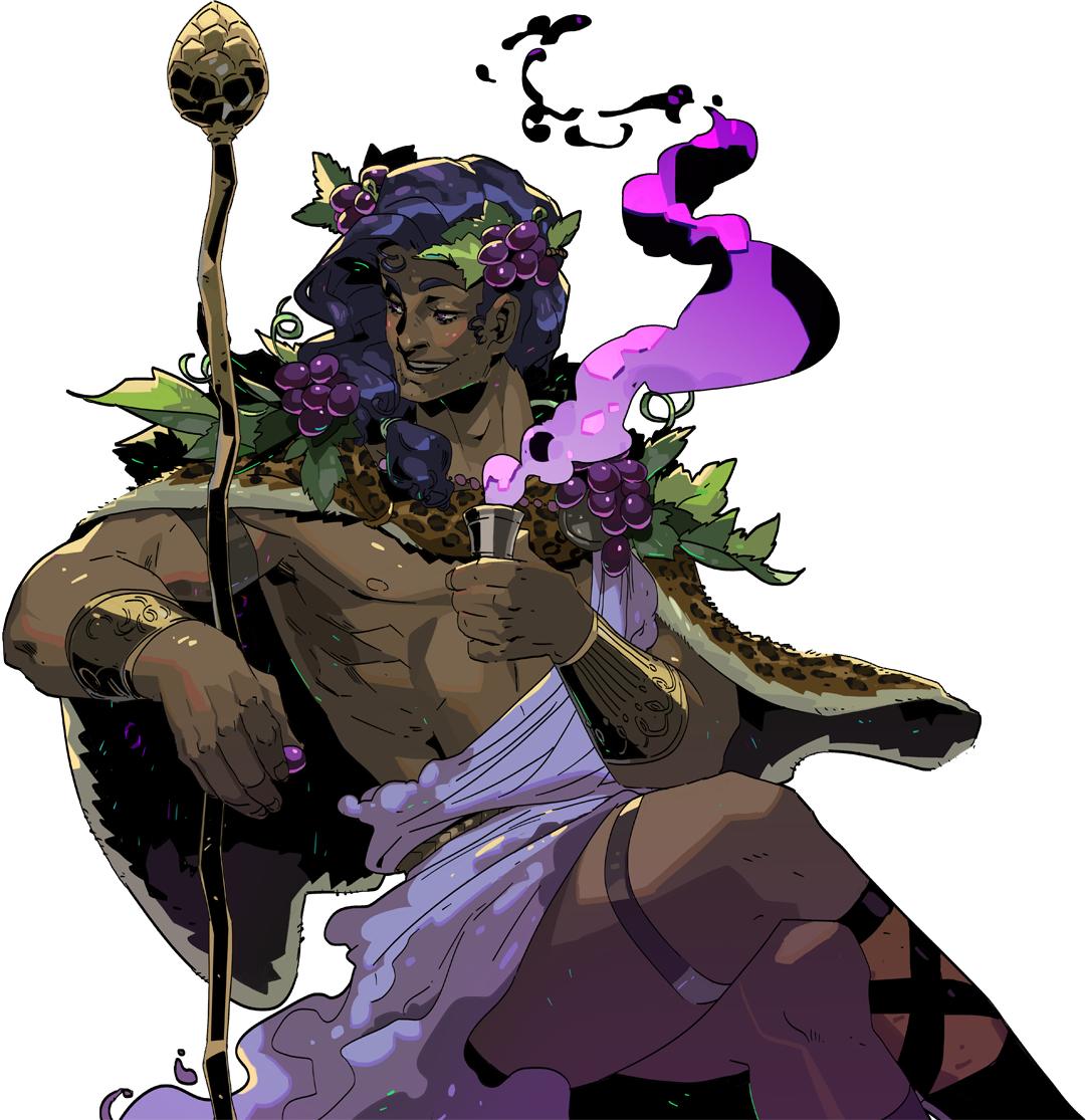 迪奥尼索司,酒神,他与主角的关系之前已经说过,其名字在古希腊语里有“重生之人”的意思。“其身体流着凡人的血”应指他和扎格列欧斯是同一个人,游戏里的扎格列欧斯有四分之一凡人血统。其所持之物为酒神杖 Thyrsus,象征生育和享乐,豹和葡萄也是他的象征。