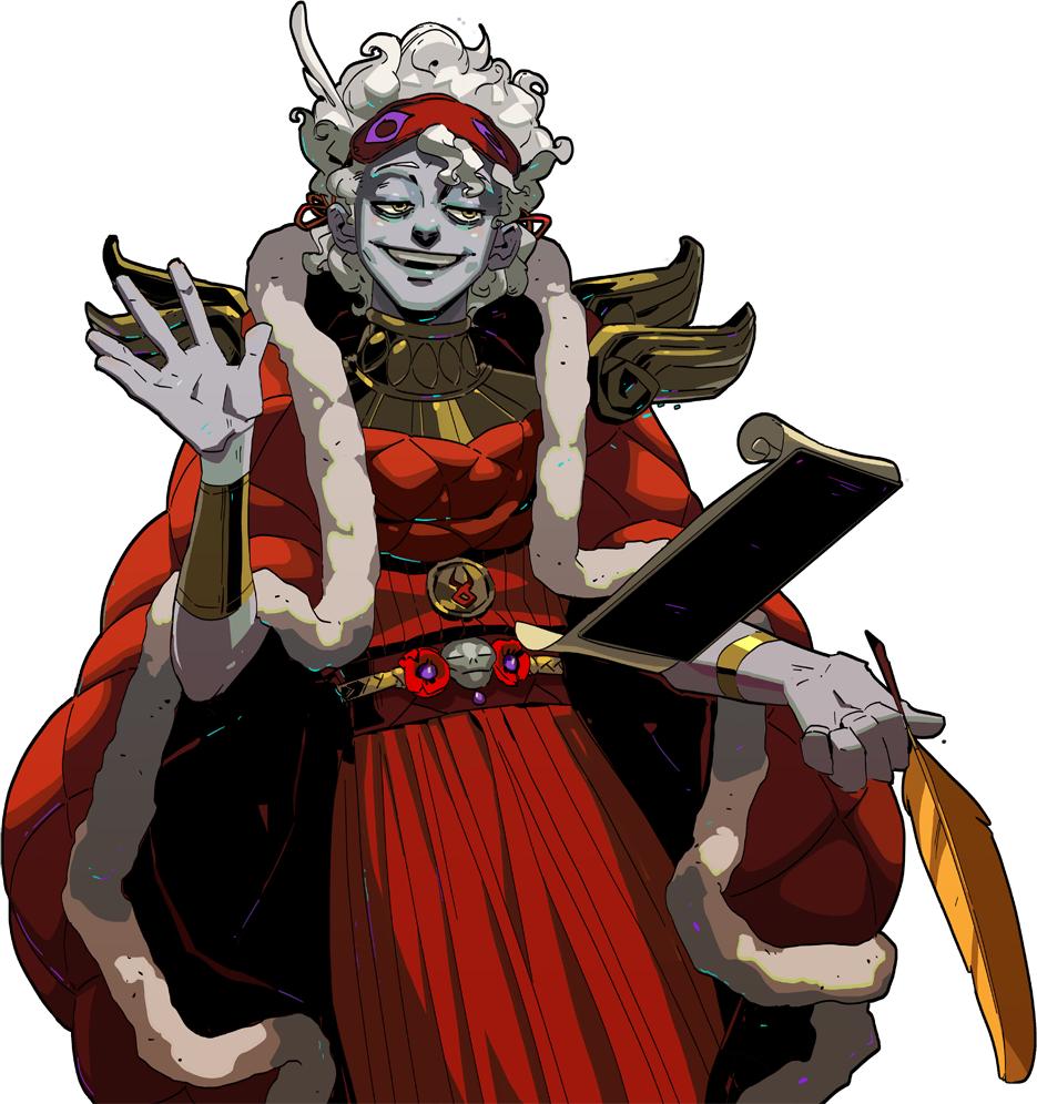 哈迪斯,冥王,慈祥的老父亲。在后世创作中,哈迪斯因其身份,也同战神一样常常作为反派出现,但事实上,除了拐走泊尔塞福涅,哈迪斯可以说没有任何恶行。《Hades》中的冥王形象与希腊神话差不多,不苟言笑的工作狂,对冥界之外的一切漠不关心,严禁任何生灵从他的领域离开。游戏中可以看到,哈迪斯穿金戴银,身上镶满宝石,因为冥界位于地下,且矿产资源也位于地下,因此古希腊人同时认为哈迪斯是财富之神,一切的地下资源都归他所有。哈迪斯和扎格列欧斯头上戴的叶子是桂冠,但象征哈迪斯的植物一般是柏树或者杨树。