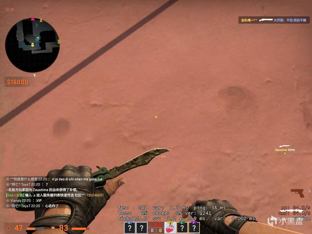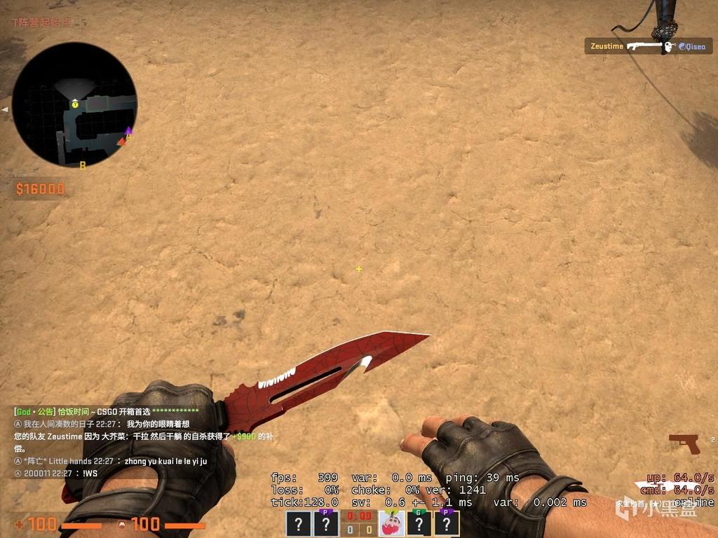 蓝色迷彩风格,一下子会想到海军。和一些蓝色系的手套很搭。磨损主要还是集中在刀刃与刀柄的连接处,爪子刀的老传统了,就和M4A4的屁股一样。