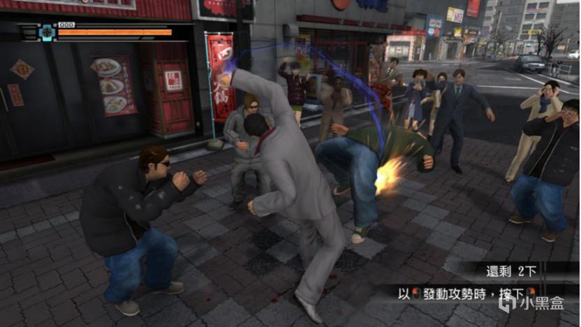 战斗方面其实非常局限,很多时候玩家都在为这个难受的镜头转角和不自由的作战风格而苦恼。让我完全想不通的一点是,每次在神室町大街小巷穿行的时候,总有一些不自量力的小混混、黑道、帮派分子等杂鱼以各种理由来问角色要钱,而最后的结局也是浪费了宝贵的时间把他们痛扁一顿收场,同时还能赚点外快。从这点其实也能看出,这些小杂鱼并没有经过很好的教导,非常没有眼力见,连堂堂东城会四代目的“堂岛之龙”都不认识,那么在组织里基本上也混不出什么气候。
