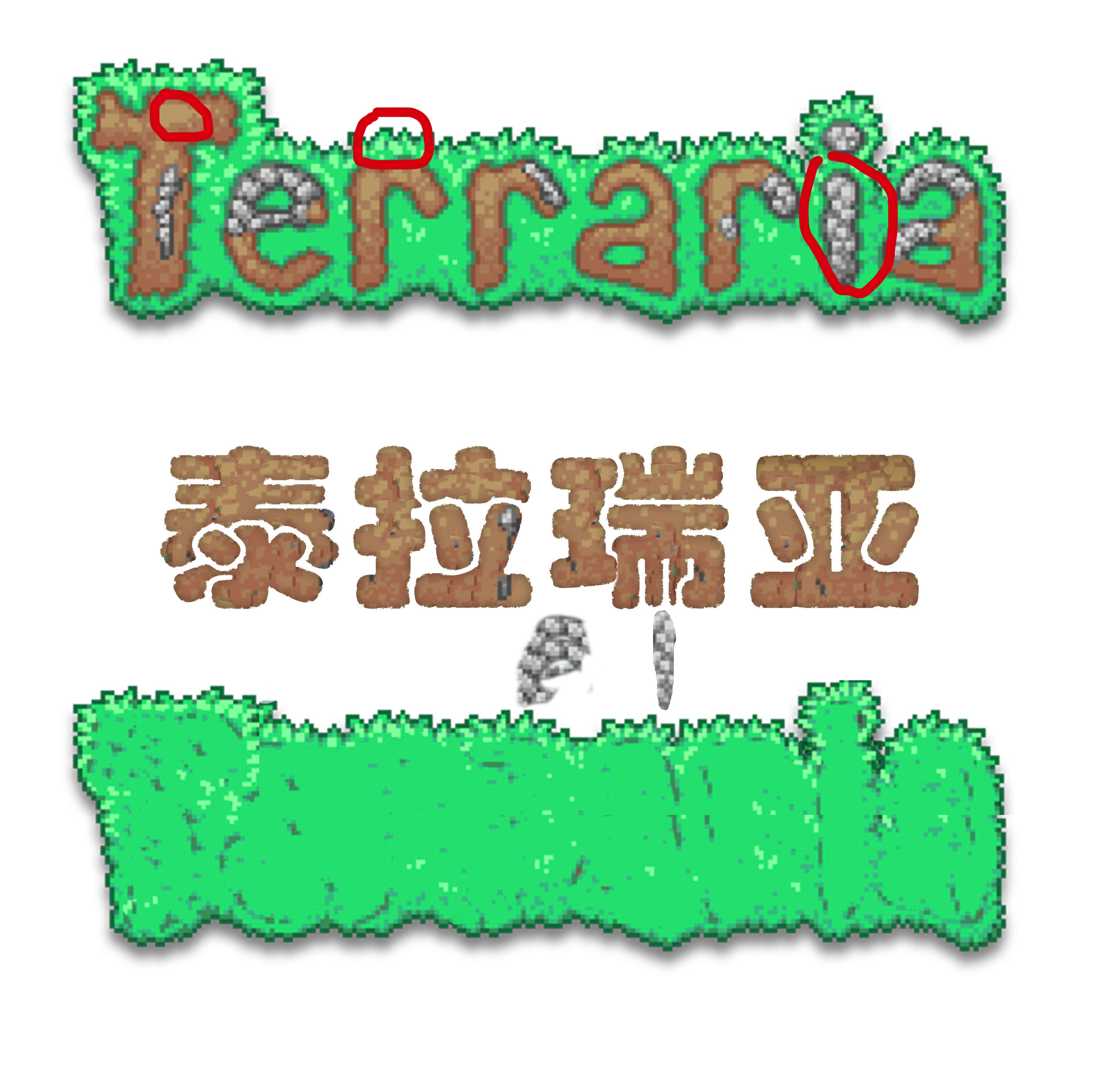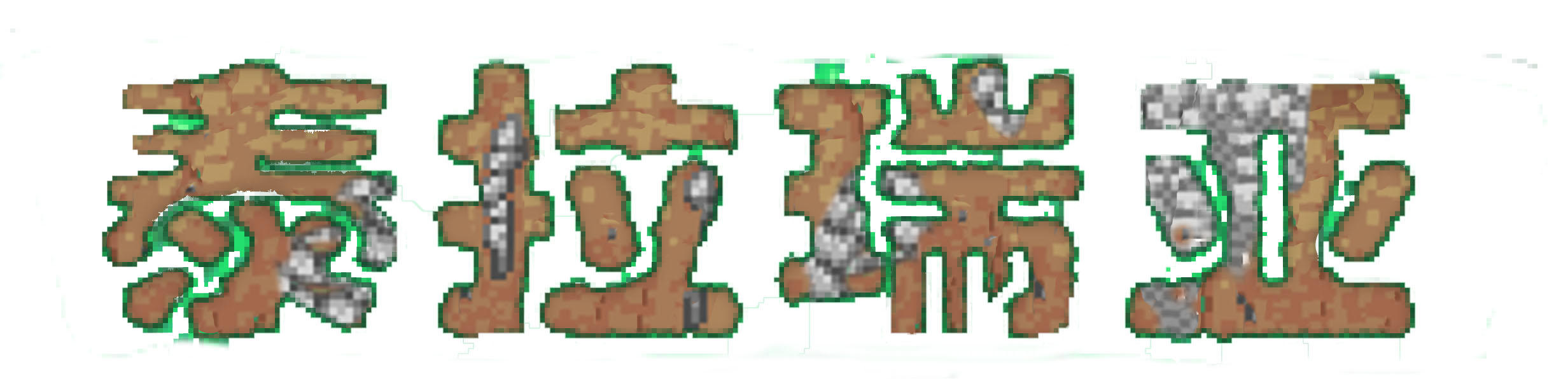 然后加上“泰拉瑞亚”,再把泥土和石头的素材等一些小细节加在字体上