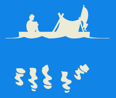 然后再中间加上“木筏”的文字,用波浪(当然ps也有波浪波纹的滤镜)代替文字下面的部分,完成!
