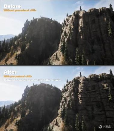 《阿尔宙斯》的故事背景为什么在古代,笔者认为这也是考虑到开发成本。回顾一下开放世界游戏,有两大派,一派是《GTA》、《看门狗》这样的现代都市,一派是《塞尔达传说荒野之息》、《FarCry》这样的自然风光。 这两派开放世界,哪一种做起来成本更低呢?就是自然风光这一种,因为大自然的自动生成技术进展相对较快,而且要求更低。例如一栋建筑你进不去会感到不真实,但一座山你进不去不是很正常吗?像《FarCry》系列就是其中的佼佼者,随着技术的不断发展,育碧已经能用很低的成本做出效果很棒的自然风光性开放世界了,比如下图是引入新技术前后的悬崖贴图,新的明显比老版本自然许多。
