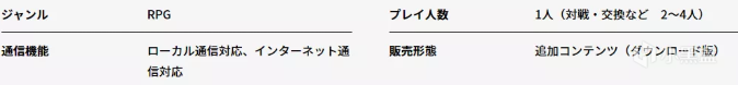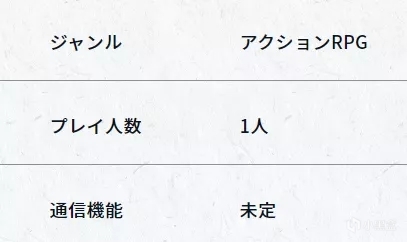 除此之外,游戏人数目前只有一人,通信机能未定,并不像其他正作游戏提到有通信机能,对战交换可以2~4人游玩,说明本作通信机能属于开发优先级相对较低随时可能取消,最终成品有可能只能单人游戏。所以本作可能是注重单人体验的剧情向真·ARPG游戏。