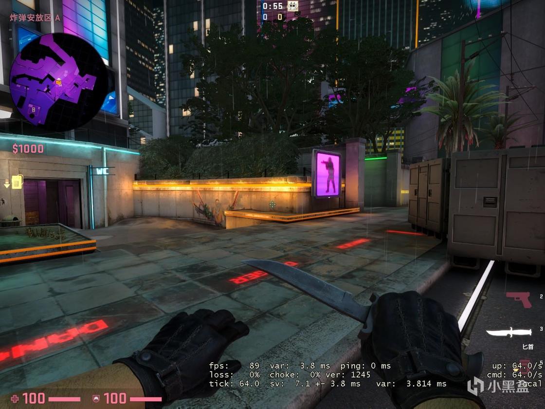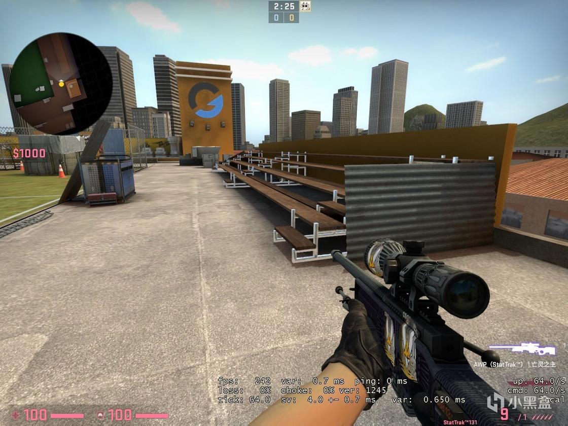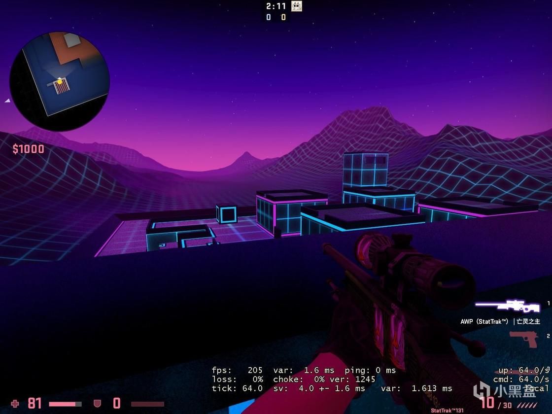 第三张单挑图来自于.:JASUS:. ,其主要风格涉及未来和霓虹灯(有2077内味了),作者似乎将地图周围环境的锐度拉到了最高。该地图仅为AWP的狙击单挑。