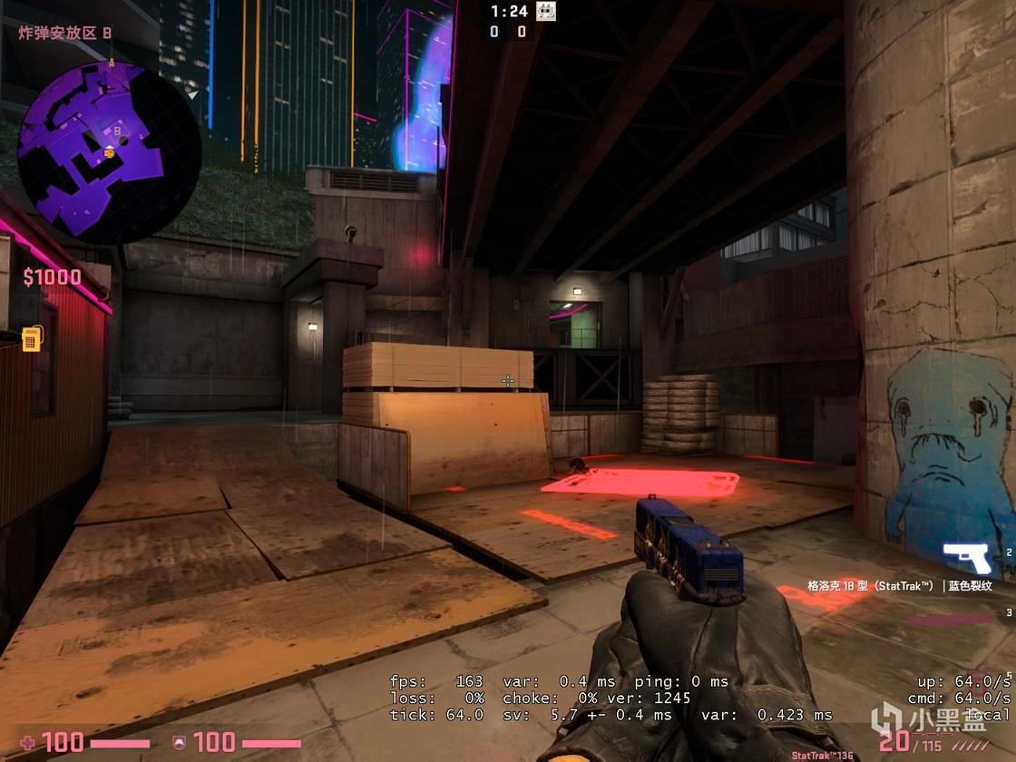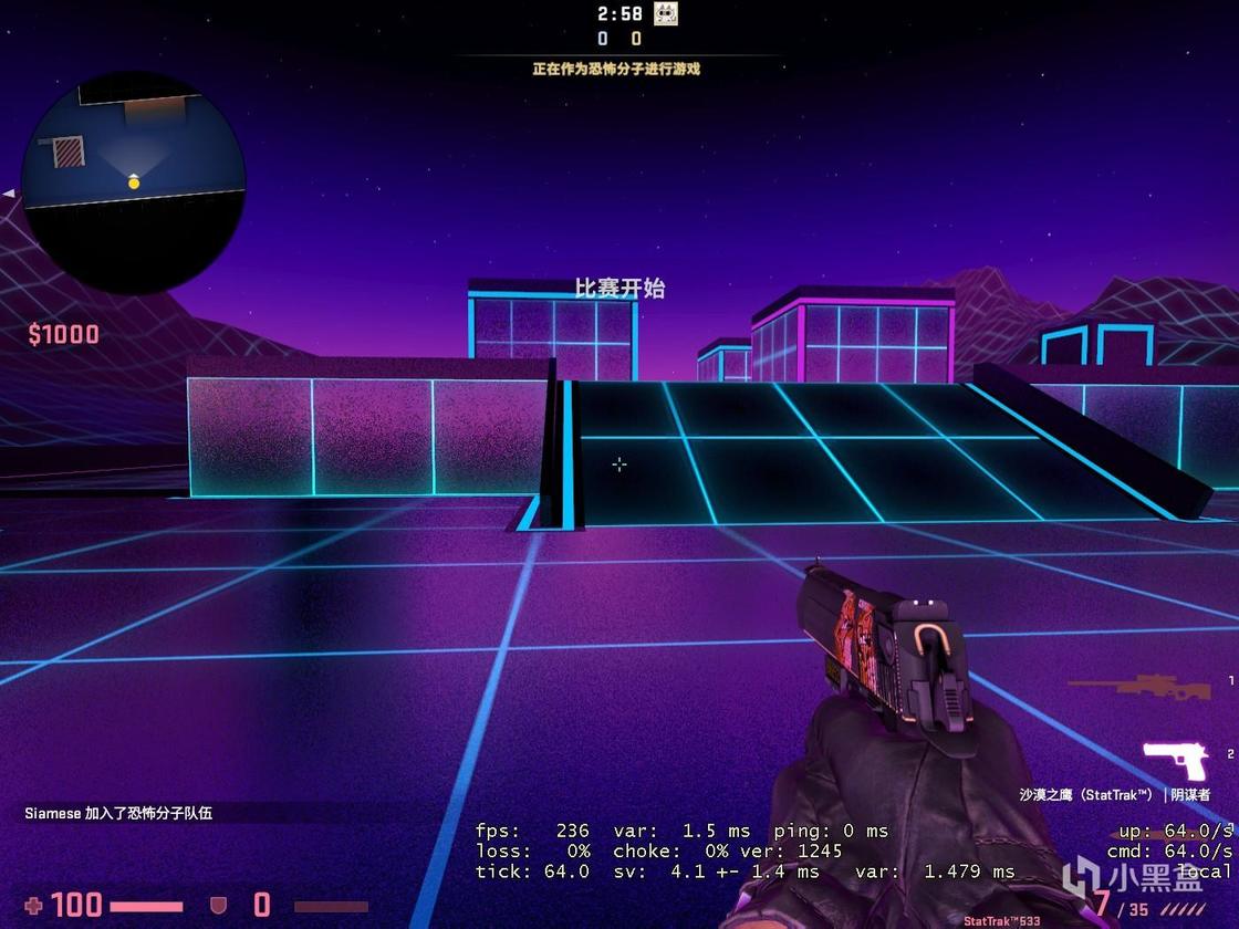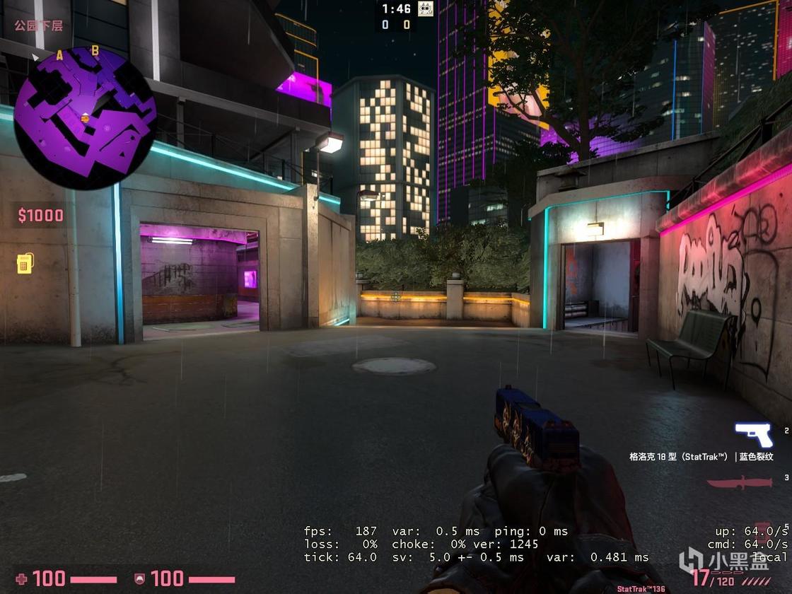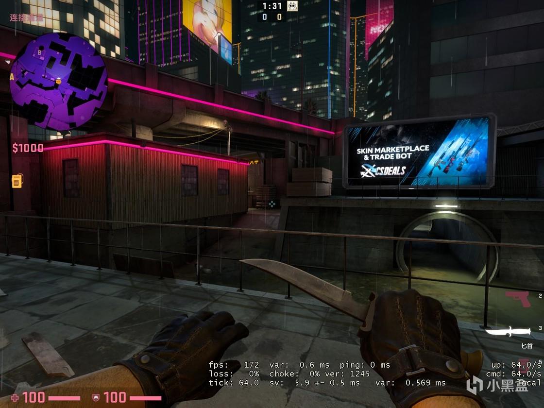 第三张单挑图来自于.:JASUS:. ,其主要风格涉及未来和霓虹灯(有2077内味了),作者似乎将地图周围环境的锐度拉到了最高。该地图仅为AWP的狙击单挑。