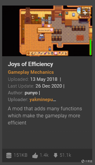 顾名思义,就是在游戏中显示一些游戏物品的信息,左下角的工具等级经验,物品的售价和出售价以及电视机的内容等等信息,真的很方便,而且几乎不影响游戏体验的一个mod。