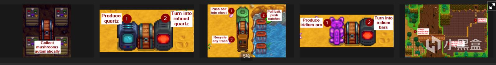 可以如上图所示把箱子放在机器旁边,原料自动拿取制作,产品自动放到箱子里,还可以把木制和石制的小路当作传送带连接。