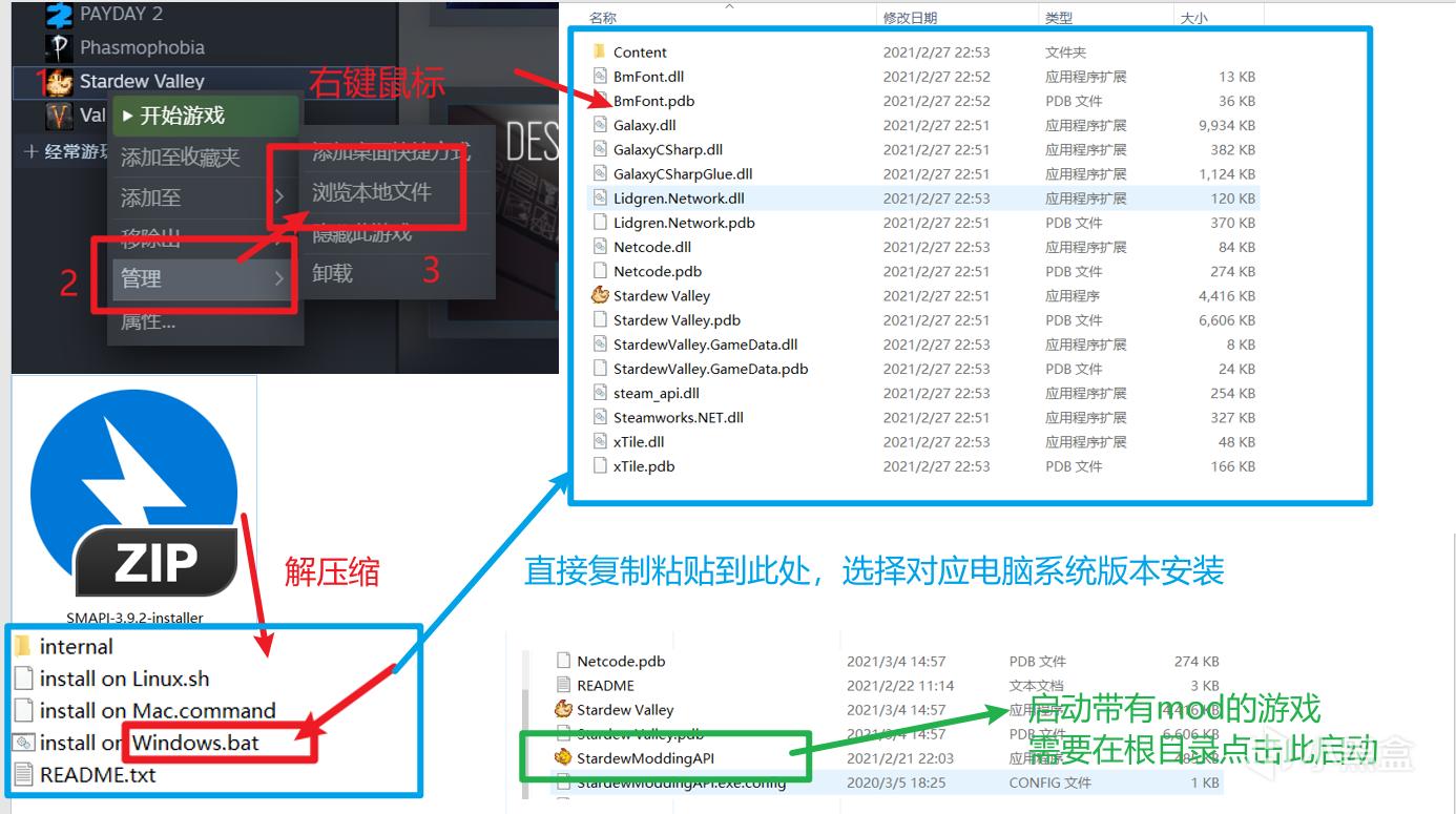 下载好SMAPI后,得到一个压缩包,如下图所示安装即可: