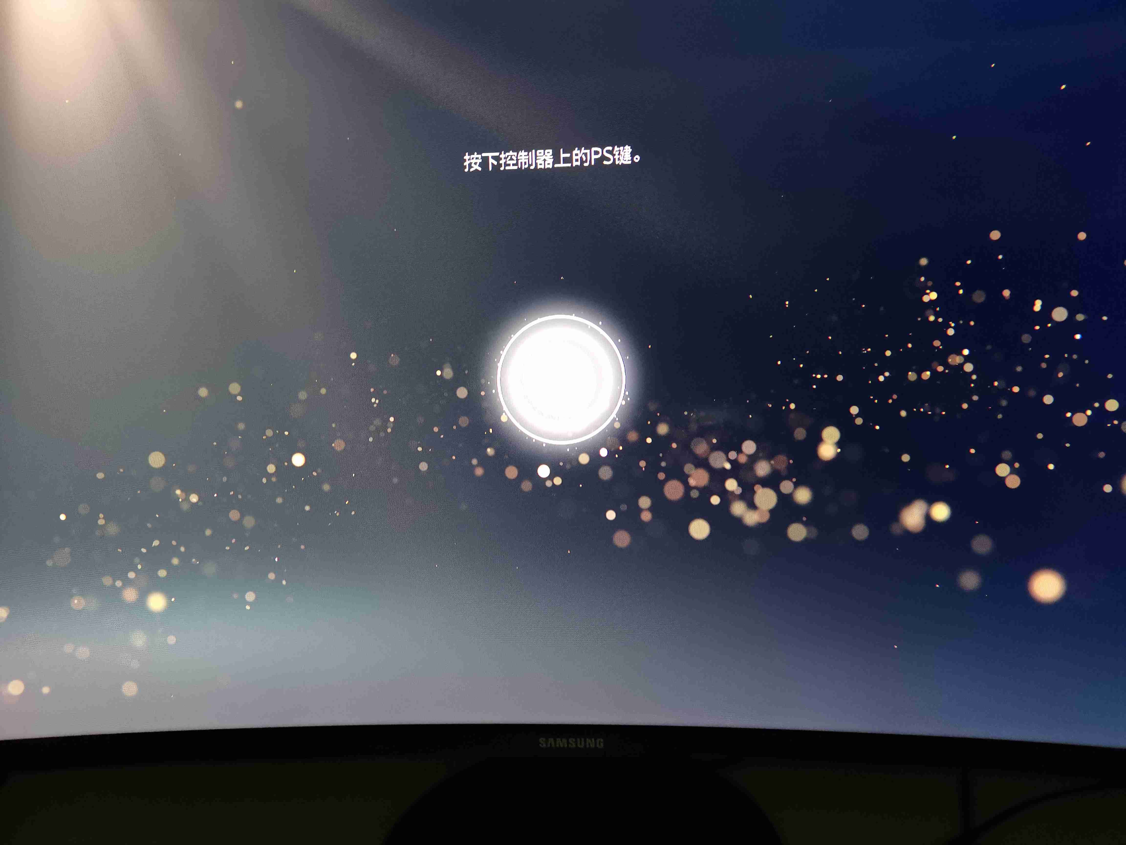 接下来连到显示器,最开始的待机状态是蓝光,之后会变成白光,然后会提示你按下控制器,这时的主机灯光会从蓝光变成白光。