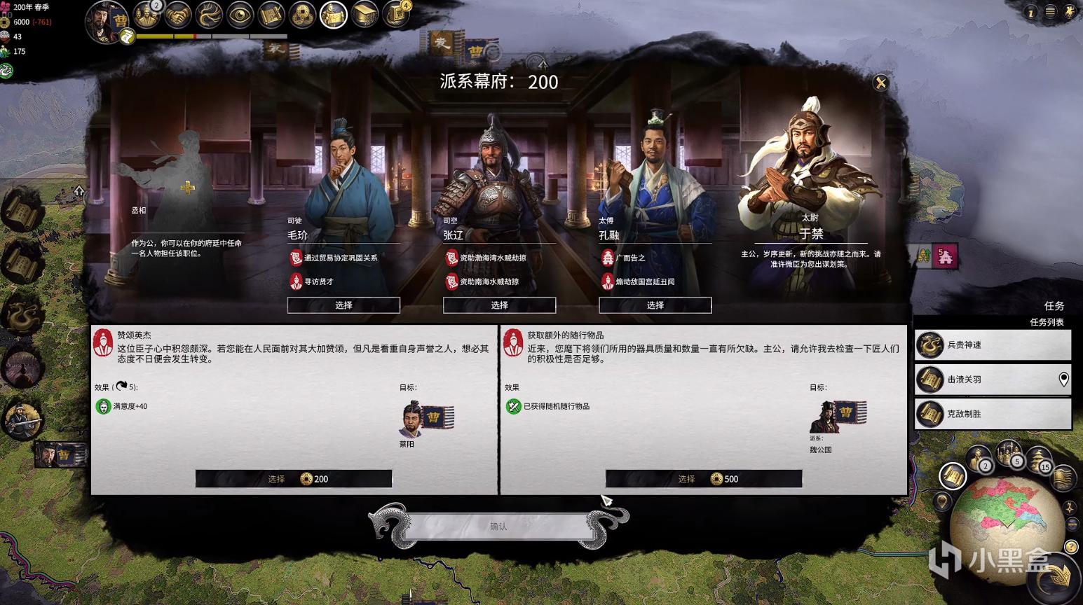 每个派系会提供一个选项,比如下面夏侯渊提出赞颂英杰:这位臣子心中积怨颇深,若您在人们面前对其大加赞赏,但凡是看重自身名誉之人,想必其态度不日会发生转变,目标是蔡阳,我们知道蔡阳是曹操部下武将,汝南太守。于建安六年,也就是公元201年,奉曹操之命攻击与刘备联合的汝南贼龚都等人,兵败被刘备所杀。