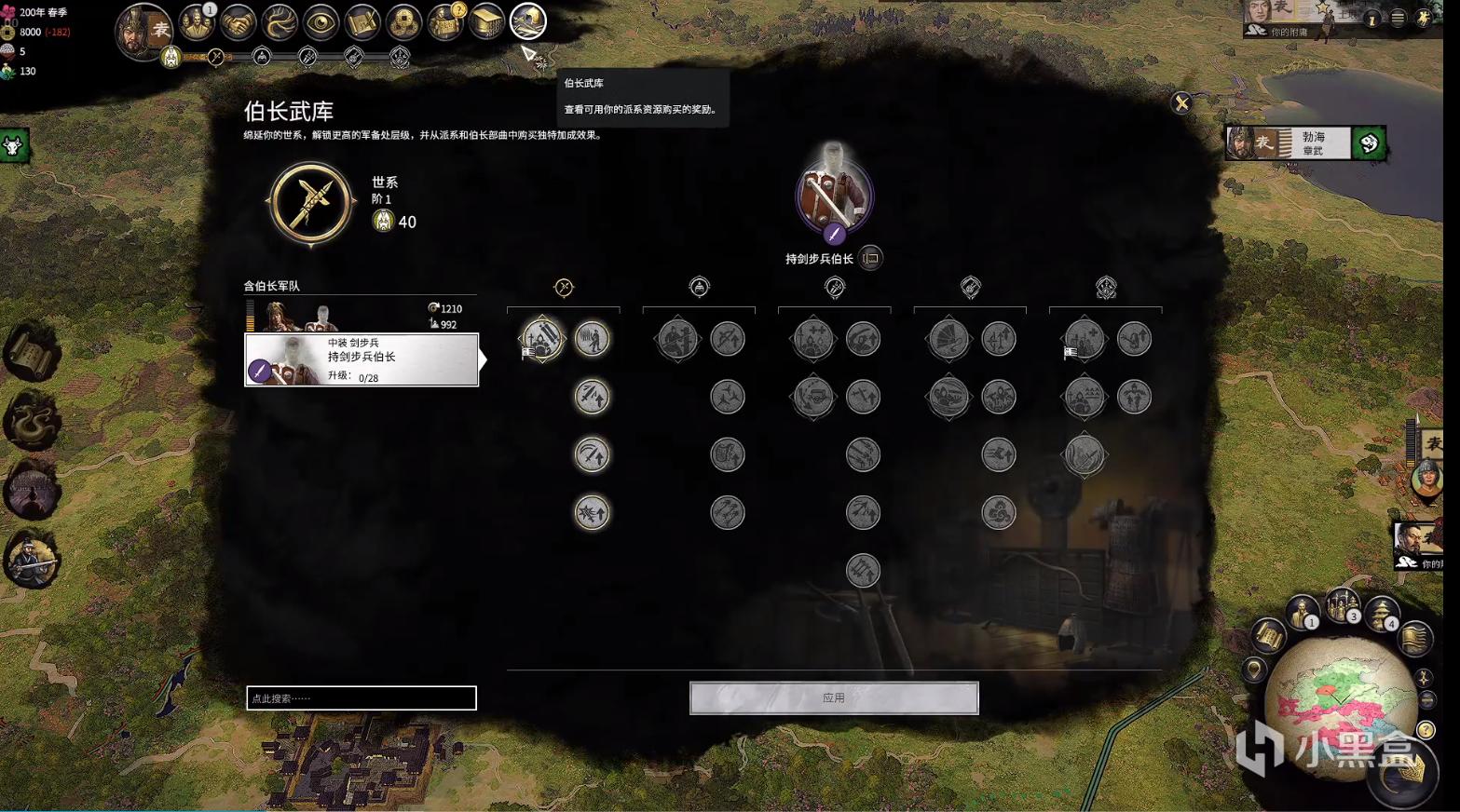 作为官渡的主角之一袁绍也有自己的新系统,袁绍下属有袁谭、袁熙、高干等附庸,腹地还有一个敌人张燕,不多对比曹操,袁绍兵力远胜于曹操,伯长武库就是袁绍派系的特殊机制,曹操擅谋,袁绍多谋少断,也是体现在了游戏系统中。