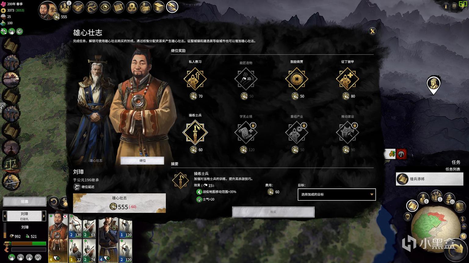 如果玩家购买了“南蛮入侵”DLC,那么刘璋派系开局除却中立的南蛮派系外并无强敌,能够通过雄心壮志系统提供的Buff快速积累实力,在游戏前期便能够打下逐鹿中原的基础。