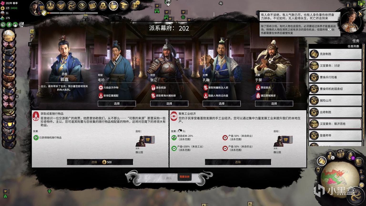 唯一需要注意的是在选择相应Buff后对应选项会进入一个较长的冷却,往往需要十数个回合才能再次使用,在选择获得何种Buff时应根据周边势力的动向以及自身下一步计划做好打算。