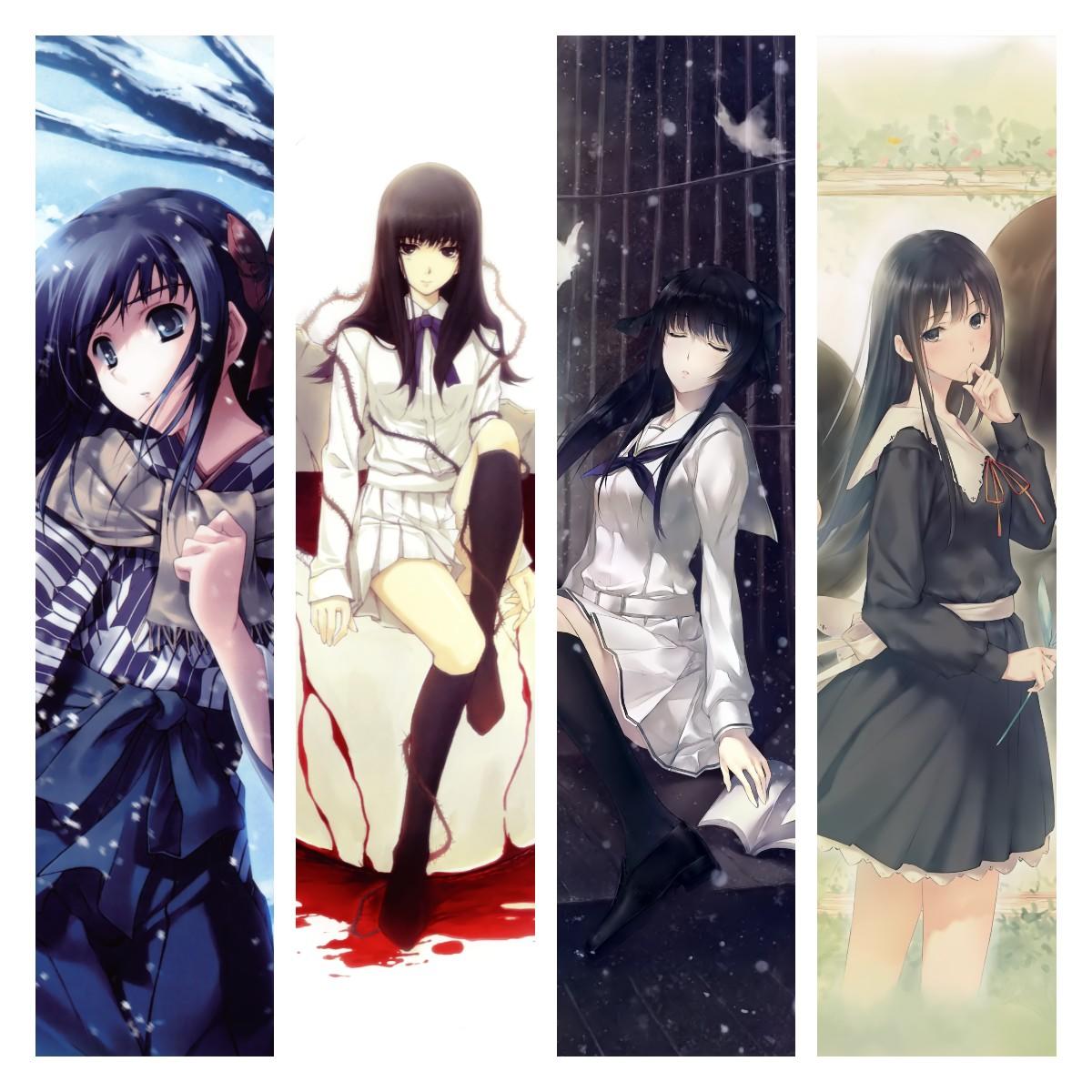 从左至右 :恋狱月狂病(2005)、壳之少女(2008)、虚之少女(2013)、FLOWERS春篇(2014)