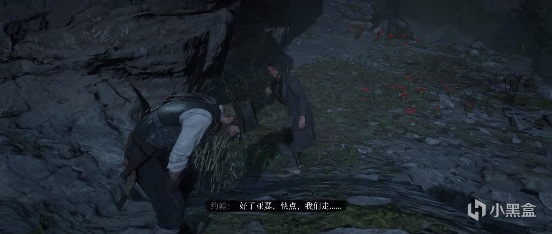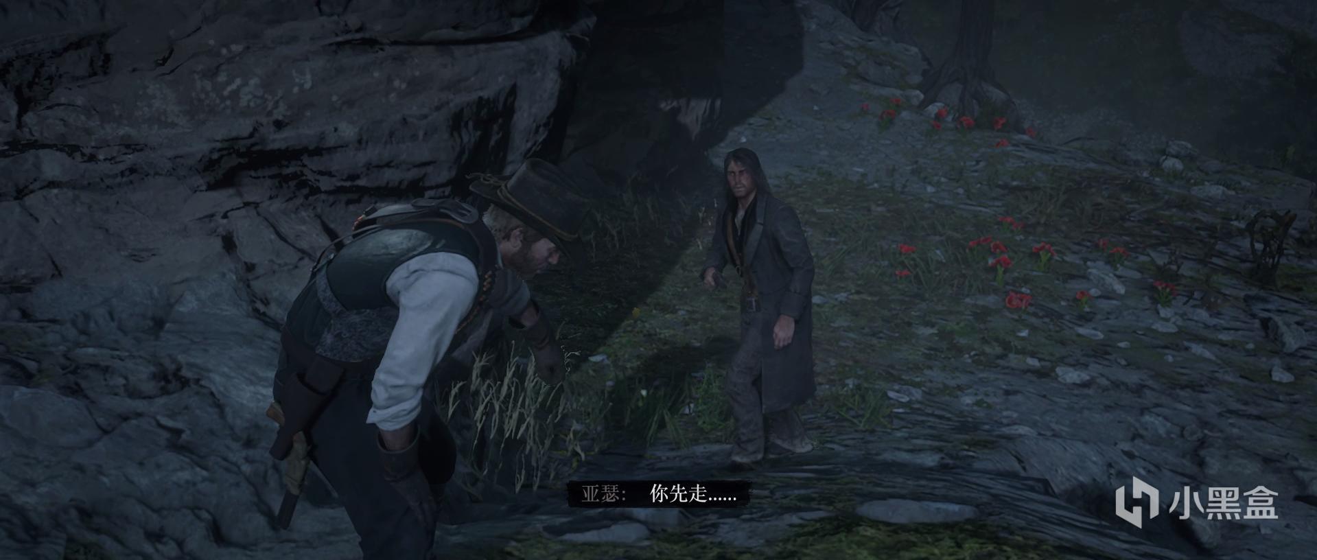 亚瑟回到【河狸岩洞】营地,跟达奇说他已经救出了艾比盖尔,并且还说迈卡跟米尔顿侦探走得非常近,亚瑟和迈卡同时拿出枪对着对方,就在两人对峙的时候,约翰竟然回来了,约翰说达奇丢下他等死,达奇则说他别无选择,亚瑟让大伙站队,约翰和苏珊大妈站到了亚瑟身边,此时哈维尔大声提醒众人平克顿侦探来了,迈卡趁机开枪射杀了苏珊大妈,达奇发声询问谁要跟随他,迈卡、比尔和哈维尔选择了继续跟随达奇,此时平克顿侦探闯进营地,带头的是罗斯探员,达奇让大伙先散开,约翰带着亚瑟穿过山洞,亚瑟告诉约翰关于艾比盖尔和小杰克的下落,迈卡带着他的那两个老朋友克里特和乔从后面追杀亚瑟和约翰,而亚瑟和约翰前面则到处都是平克顿侦探,逃跑途中亚瑟的坐骑中枪死去,亚瑟问约翰帮派那笔钱怎么办,毕竟艾比盖尔已经给了亚瑟钥匙,约翰则说回去的话不用5分钟就会死亡,此时出现两个选择,分别是回去拿钱和帮助约翰离开,我选择了帮助约翰离开。