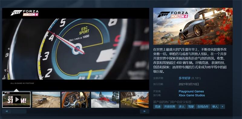 强强联手,《极限竞速:地平线4》上线Steam