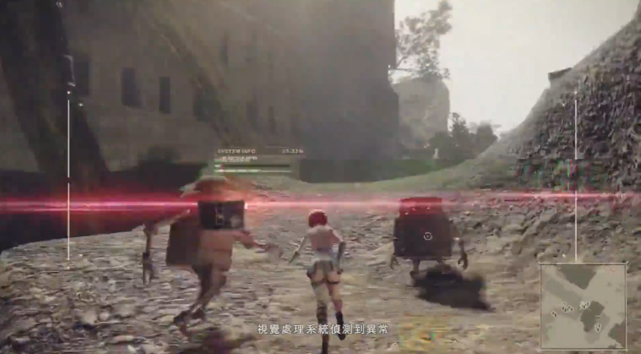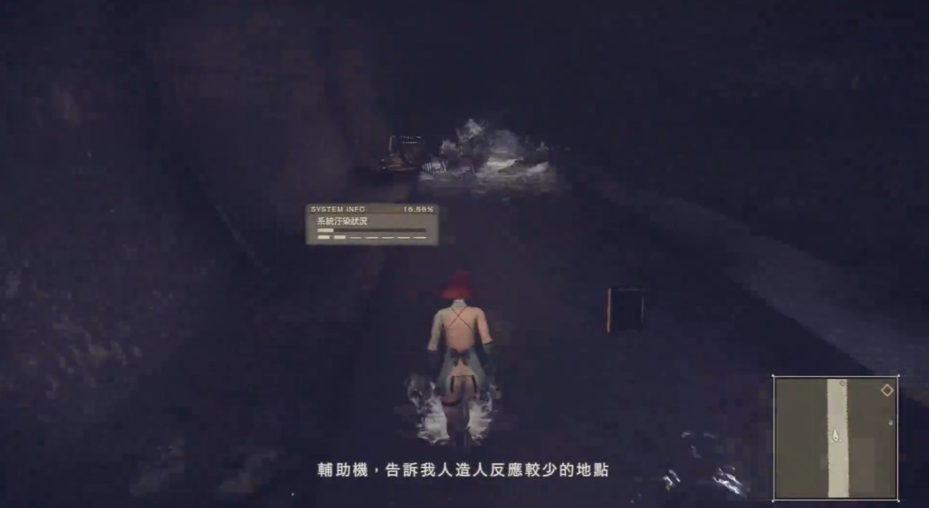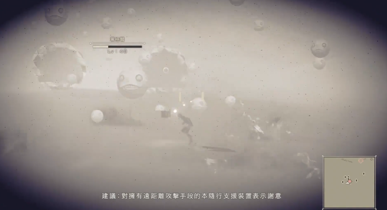 “警告:病毒感染程度提升至32%...视觉处理系统侦测到异常...”辅助机生硬的声音听不出一丝情感波动。此时玩家视野开始出现闪烁条纹。由于身体机能的损坏,作战能力直线下降,甚至随便一个小机械都能将2B打飞出去。而此刻的网络还在传来“月球人类议会向在地球作战的...喊话...今天,要与各位...一个好消息...这次月球人类议会决定...新兵器...借此给予...机械生命沉痛的打击...希望的曙光...期待各位的战果...愿人类...”的广播,断断续续的声音似乎在讽刺着人造人的失败。