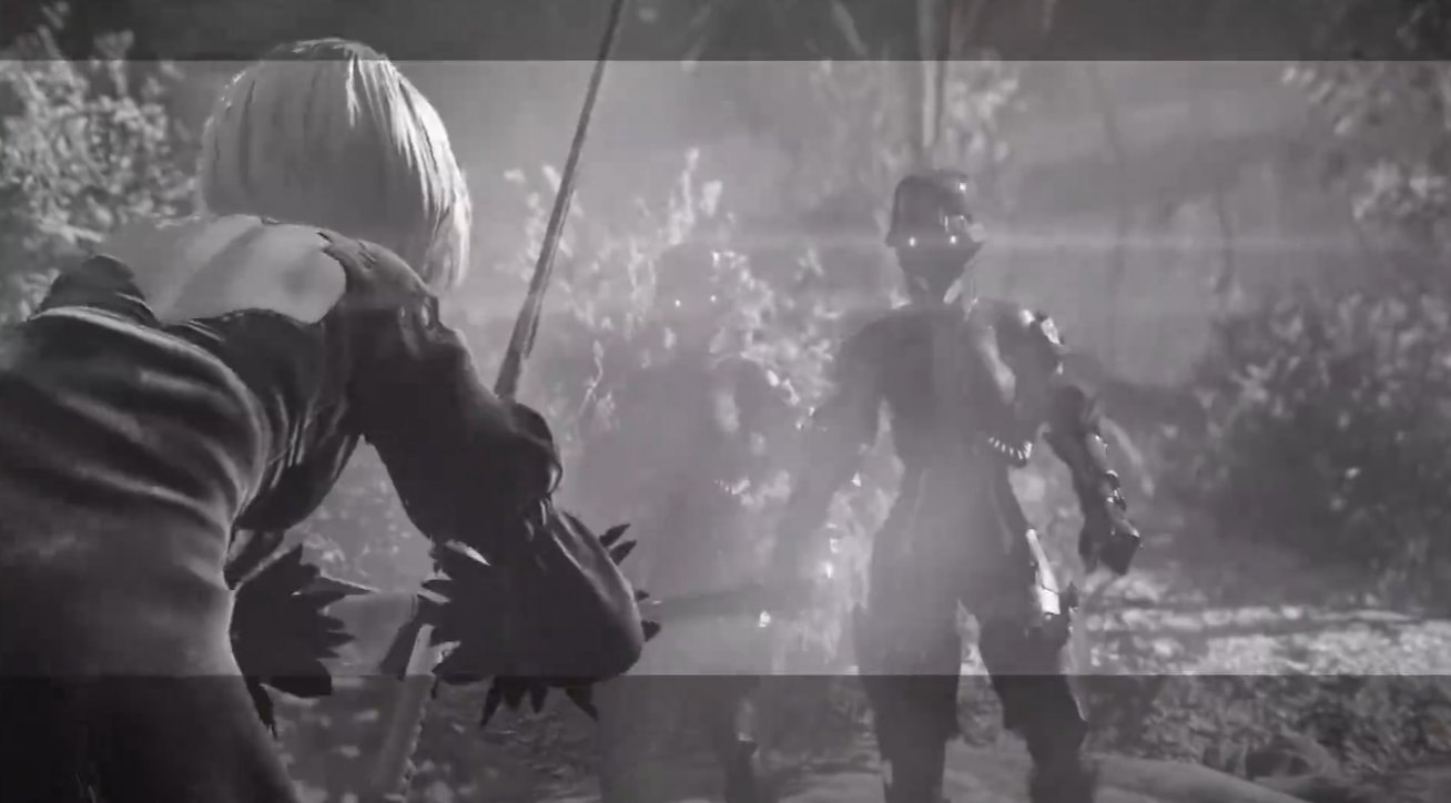 猛地挥剑砍去,黑影慢慢消失,而身后却出现了2B型的影子并说了一段有些奇怪的话:“我们是一样的,无依无靠,只能哭喊...”