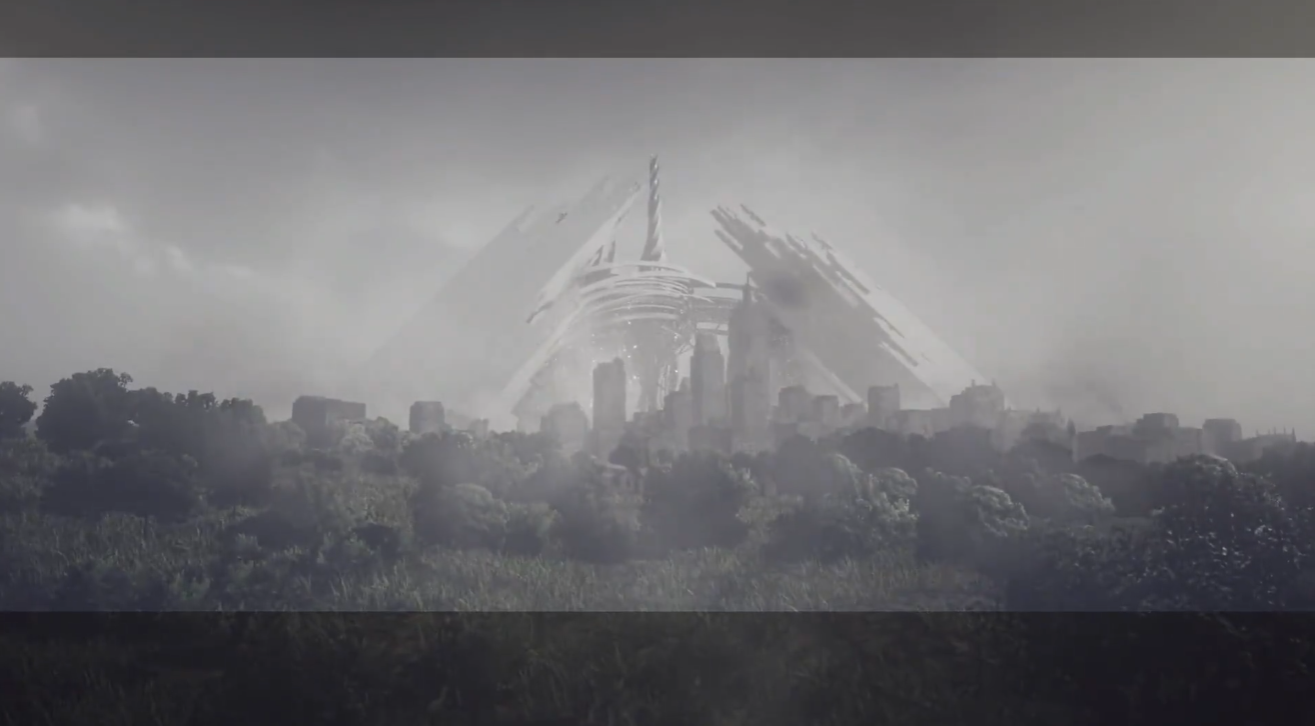 此时地面各个方向都有着白色柱子升起,在大地上构件出一个巨大的发射台,而废墟都市的深坑中则出现了一个巨大的塔,周围围绕着几座尖锥状的卫星塔。