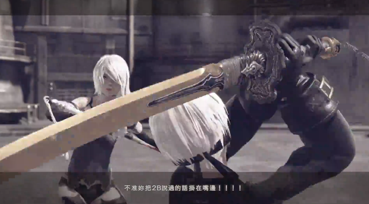 还记得上一篇说过的尤尔哈部队成员无法向友军发动攻击吗,便是从这里明确得知。关键时刻9S黑天黑地的黑客本领黑入2B内部解除了限制(我觉得这里有个剧情bug,同样是被敌方控制,为什么2B在歌剧院打歌姬的时候就可以随意对被控制的人造人攻击,在这里却又要需要被黑入解除限制?至于2B可以攻击9S是因为9S本就是2B作为E型机种的目标。)