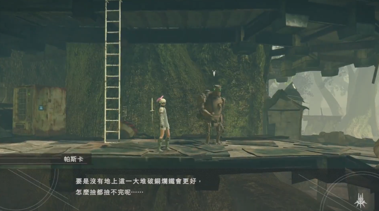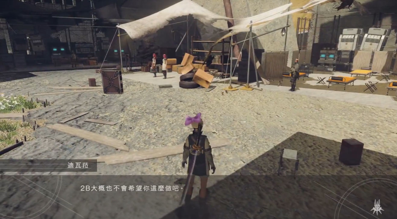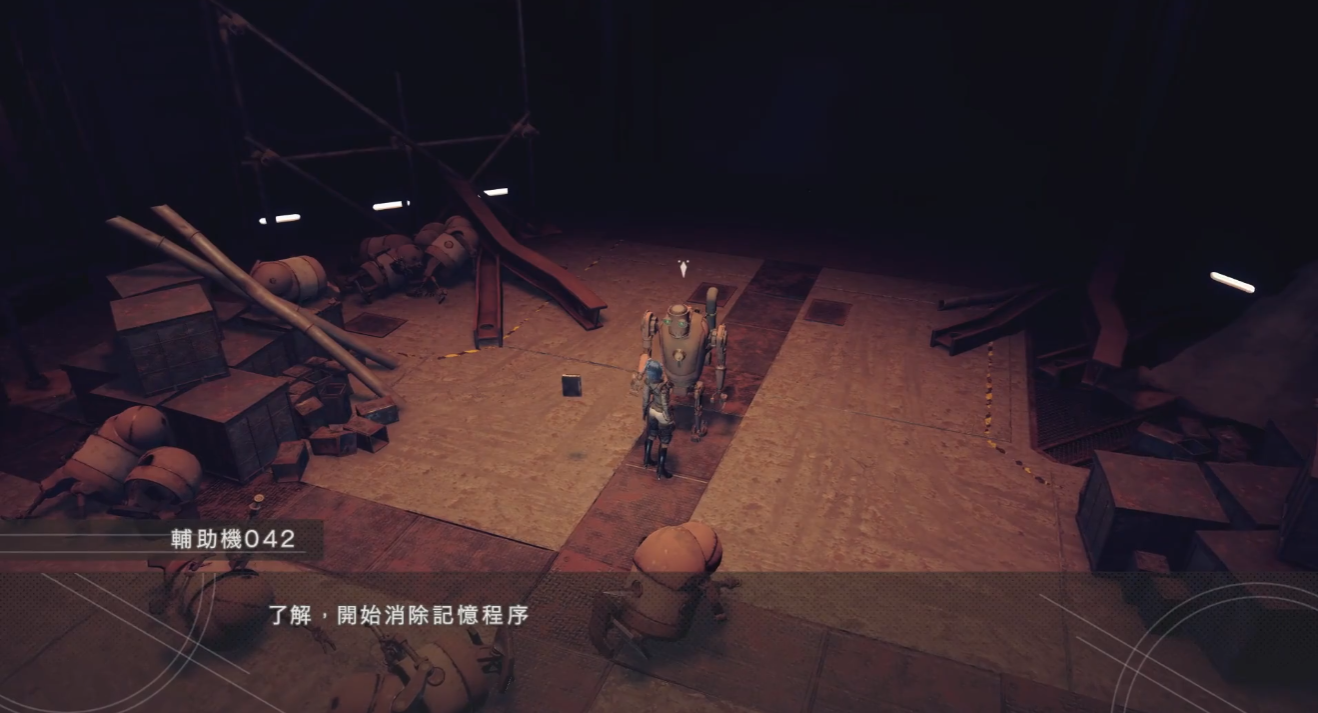 再次从沙漠中醒来的A2由于之前激烈的作战导致零件损坏,在辅助机的指引下前往抵抗军营希望能找到可以替换的零件。