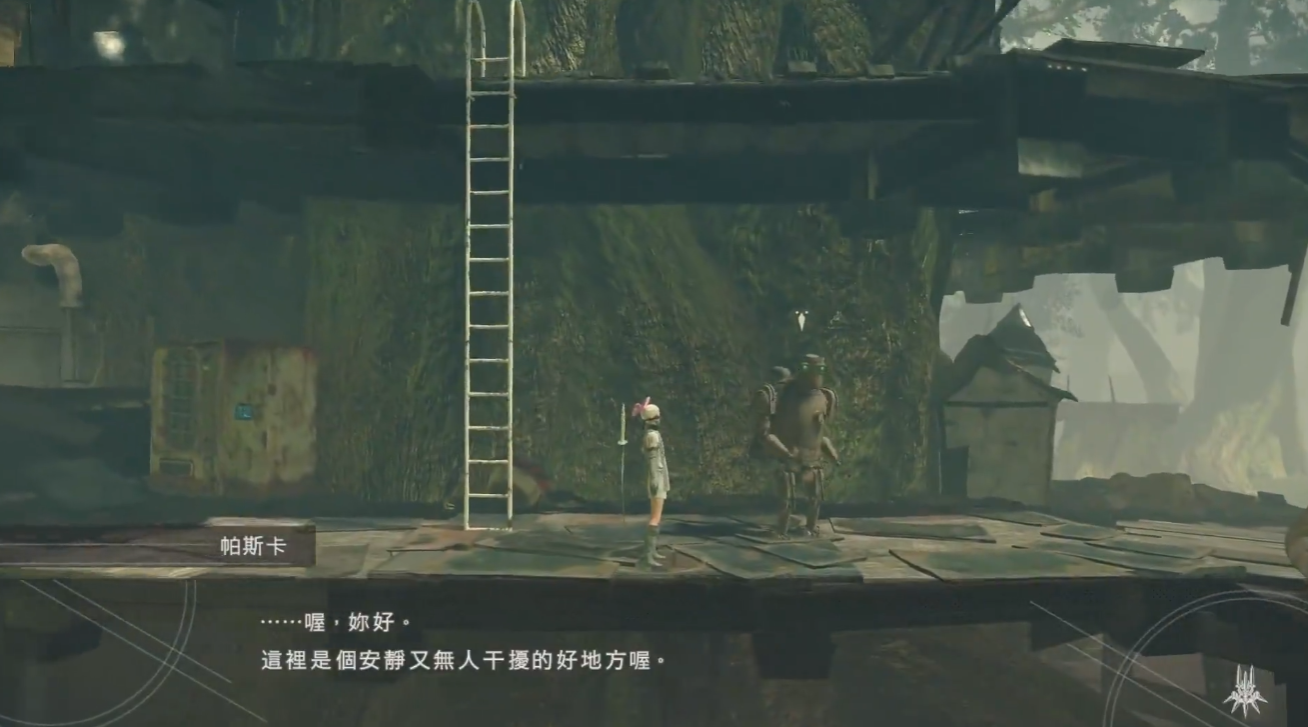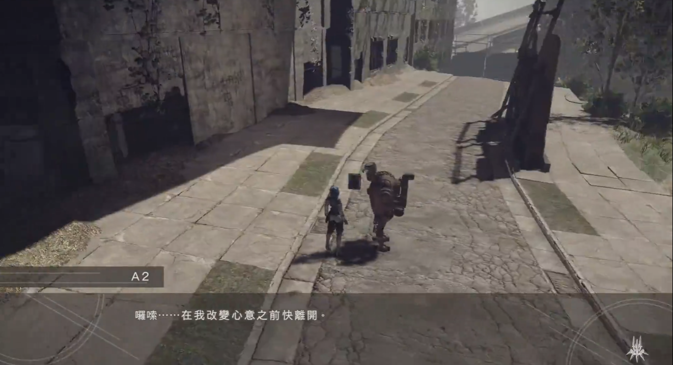 A2在断桥的另一边醒来,身边是遵循2B指令跟随A2的辅助机。A2似乎对尤尔哈部队的一切都感到厌恶,然而对这个她不怎么喜欢的辅助机死皮赖脸的跟随却也没什么办法。