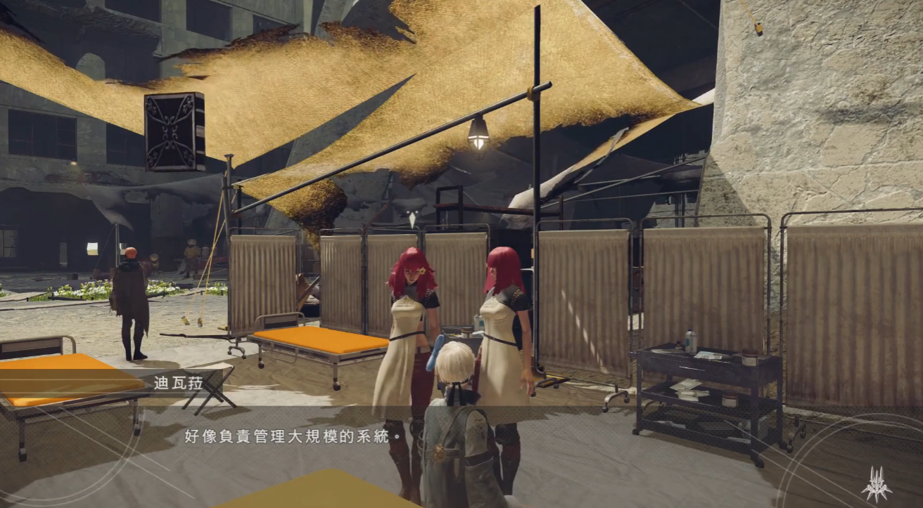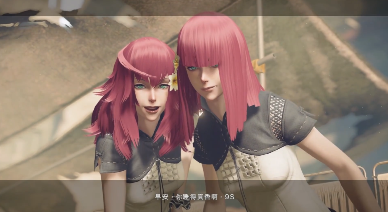 当9S醒来的时候,已经身处抵抗军营,睁眼映入眼帘的是一对双胞胎人造人--迪瓦拉.波波拉。