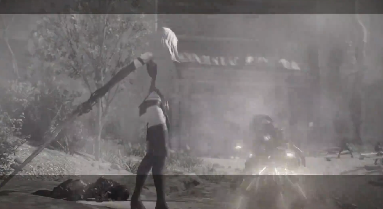 清理完杂兵的A2神色复杂的看着倒在一旁的2B。