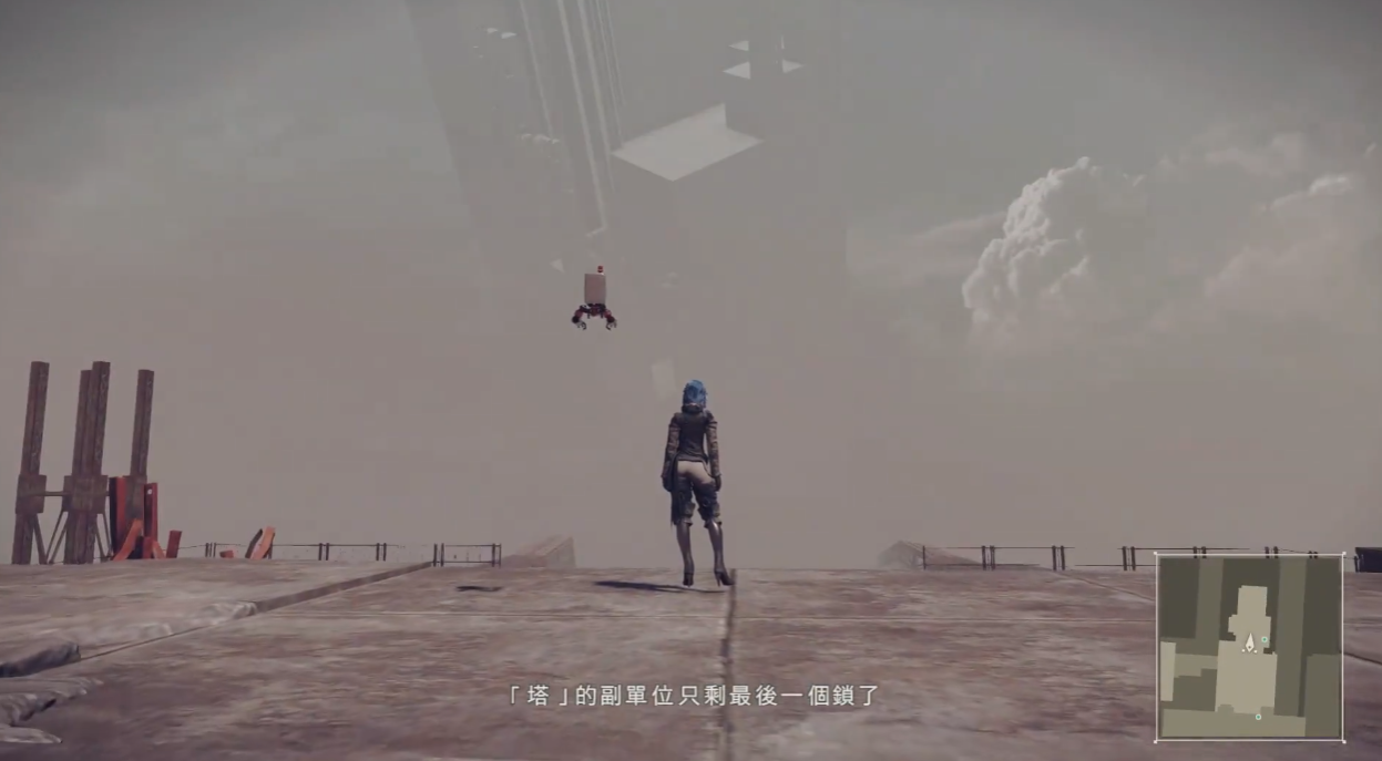 处理完帕斯卡的事情,A2走出工厂。空中突然传来【塔】的声音,【塔】的副单位只剩最后一个锁了,解锁最后一个的人会得到奖赏。A2对那奖赏可没什么兴趣,而且她可不认为那所谓的奖赏会是什么好东西,但是她答应2B照顾好9S。于是寻着辅助机的指示前往最后一个回收点。