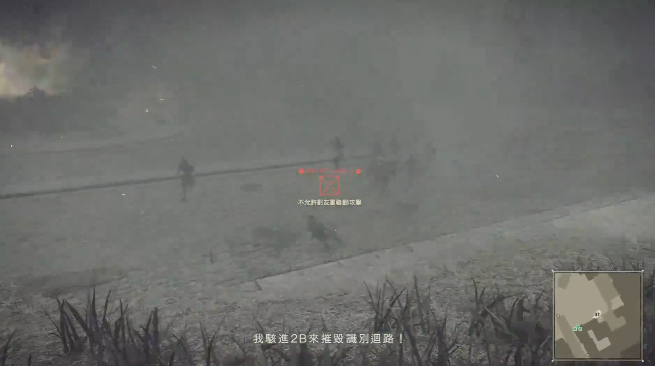 还是和以往的行动一样,S型最先抵达地面,负责摧毁敌方防空系统为后续攻击做准备。而我们的第一个任务便是控制9S黑入敌方的防空节点。