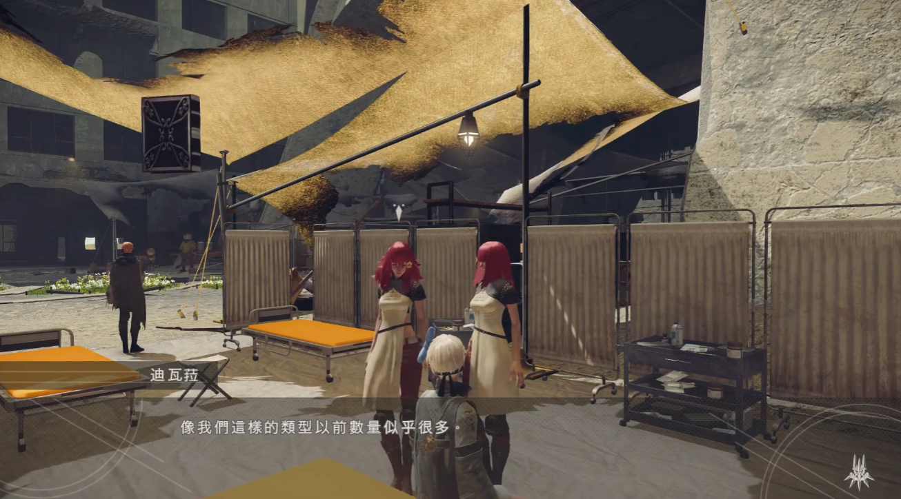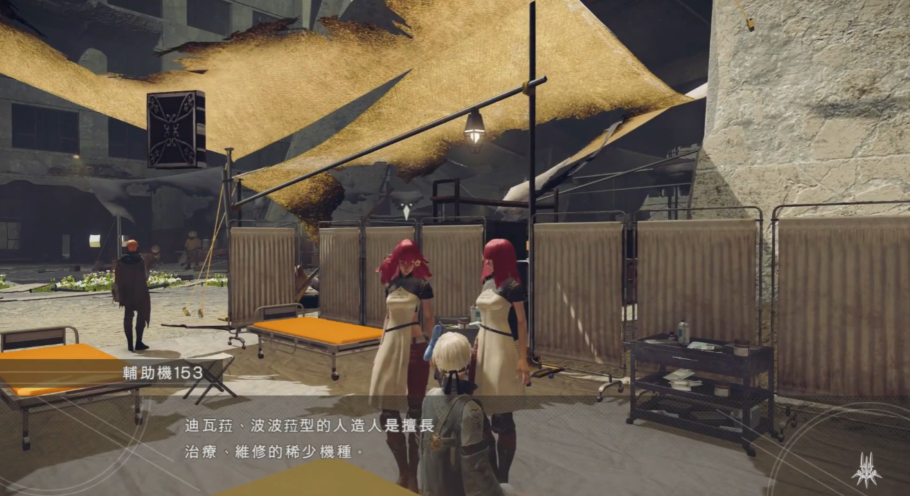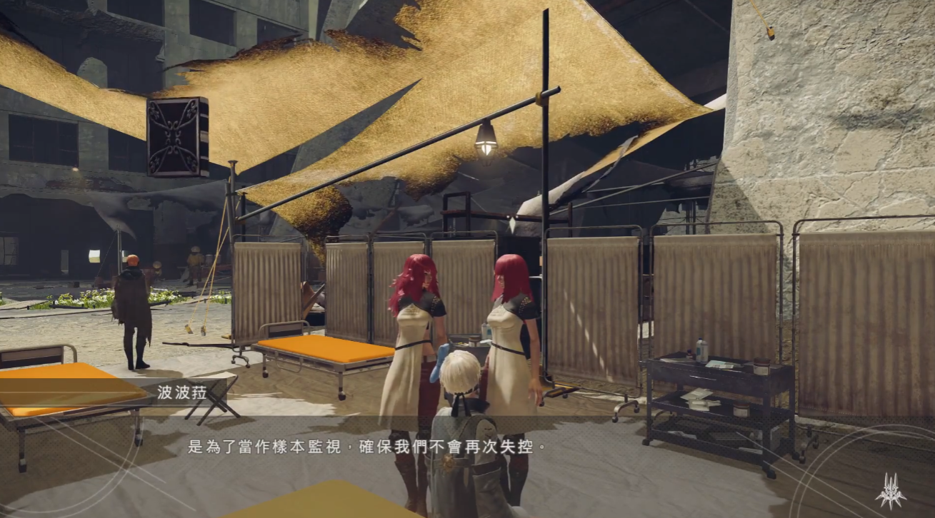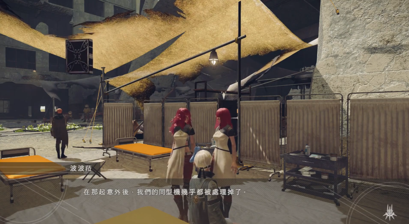 这里双子透露了一点自己的消息,她们曾经有很多同伴,并且负责管理一个庞大的系统。只不过却失控引发了意外,大部分都被清除掉了,而她们能活下来是被当作样本监控,保证不会再发生意外。她们跟随部队救治受伤的人造人,以此作为自己赎罪的方式。