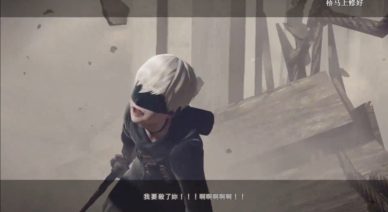 “啊...9S...”似乎感受到什么的2B回头喃喃道,眼前的世界开始崩溃,目光涣散间最后一幕是9S疯狂喊叫冲过来的身影。